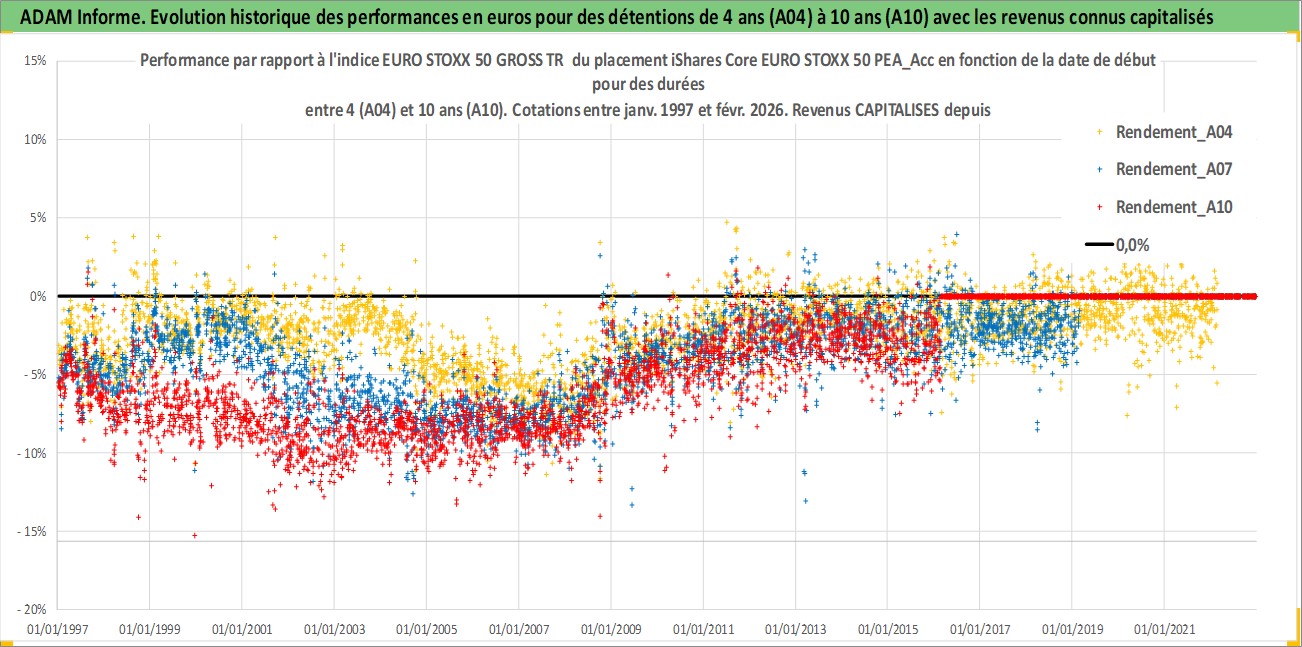 Site dédié aux investisseursPage dédiée sur site financeAnalyse des valorisations hebdomadaires du fonds iShares Core EURO STOXX 50 PEA_Acc. Cet actif est cote en EUR. Les valorisations couvrent les semaines 1997W01 a 2026W09. Les revenus de cet actif financier sont pris en compte depuis la semaine 1997W01. La note ESG de cet actif n'est pas connue.