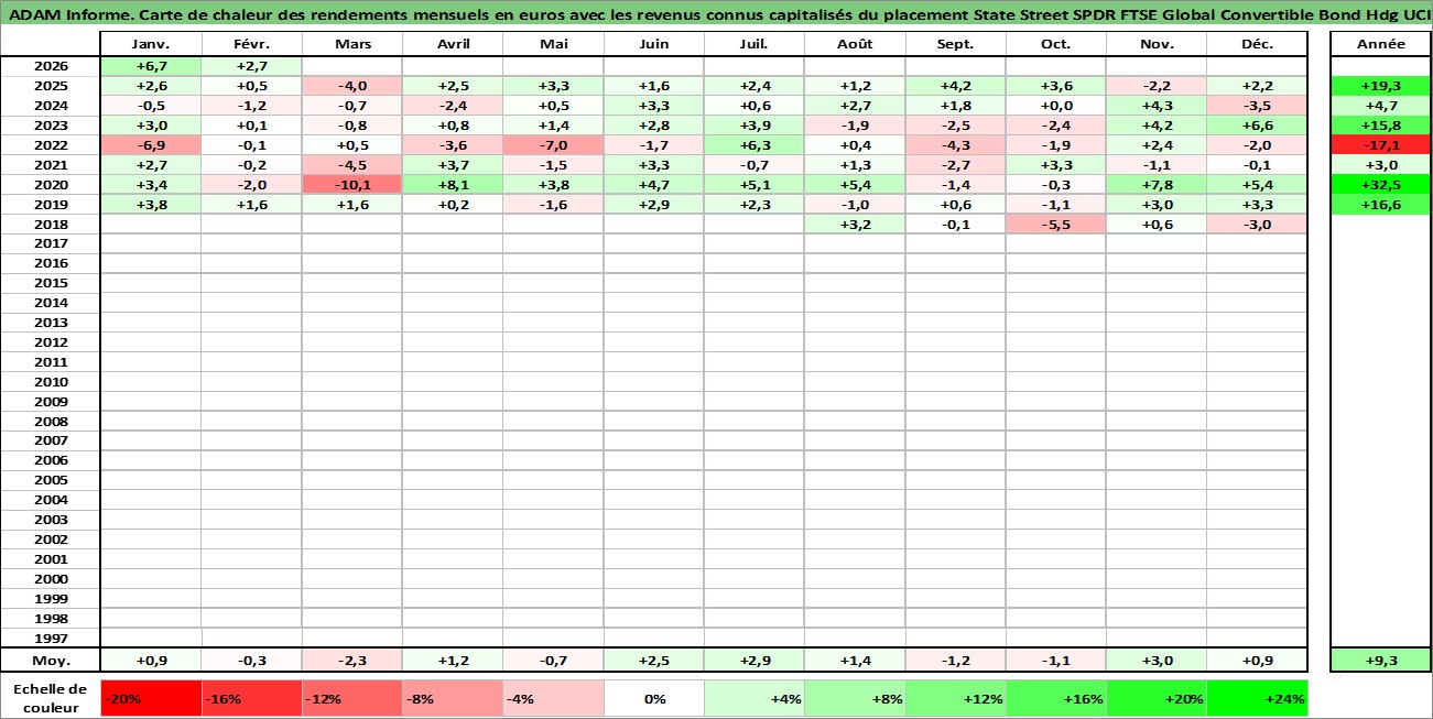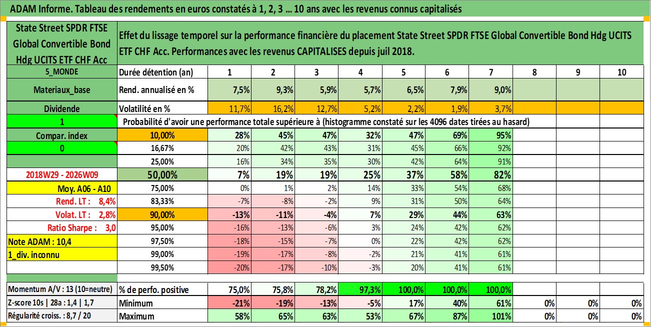 Site dédié aux investisseursPage dédiée sur site financeAnalyse des valorisations hebdomadaires du fonds State Street SPDR FTSE Global Convertible Bond Hdg UCITS ETF CHF Acc. Cet actif est cote en CHF. Les valorisations sont en contrevaleur EURO et couvrent les semaines 2018W29 a 2026W09. Les revenus de cet actif financier sont pris en compte depuis la semaine 2018W29. La note ESG de cet actif n'est pas connue.
