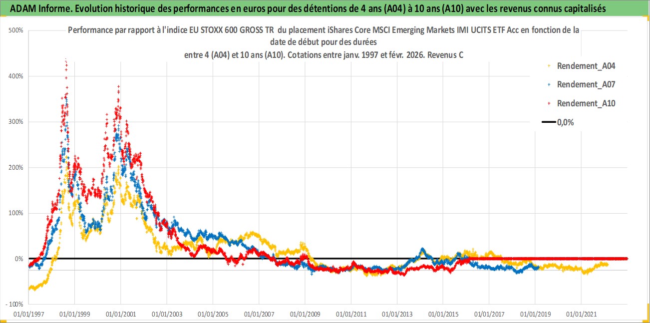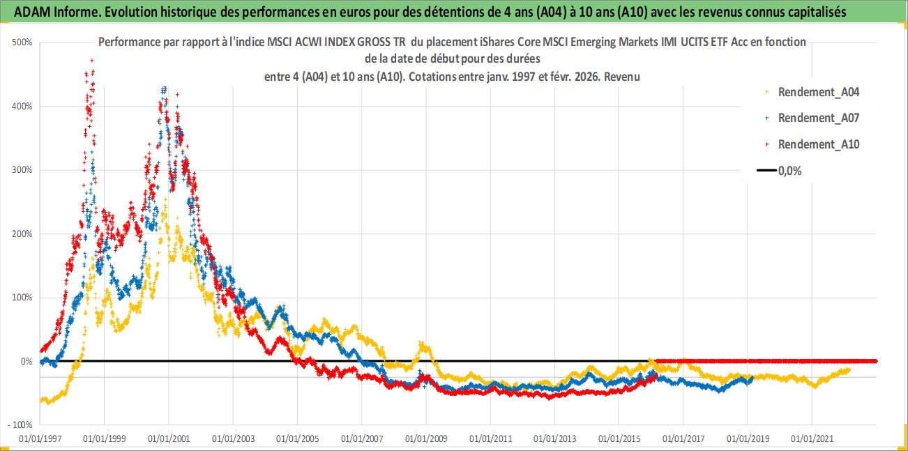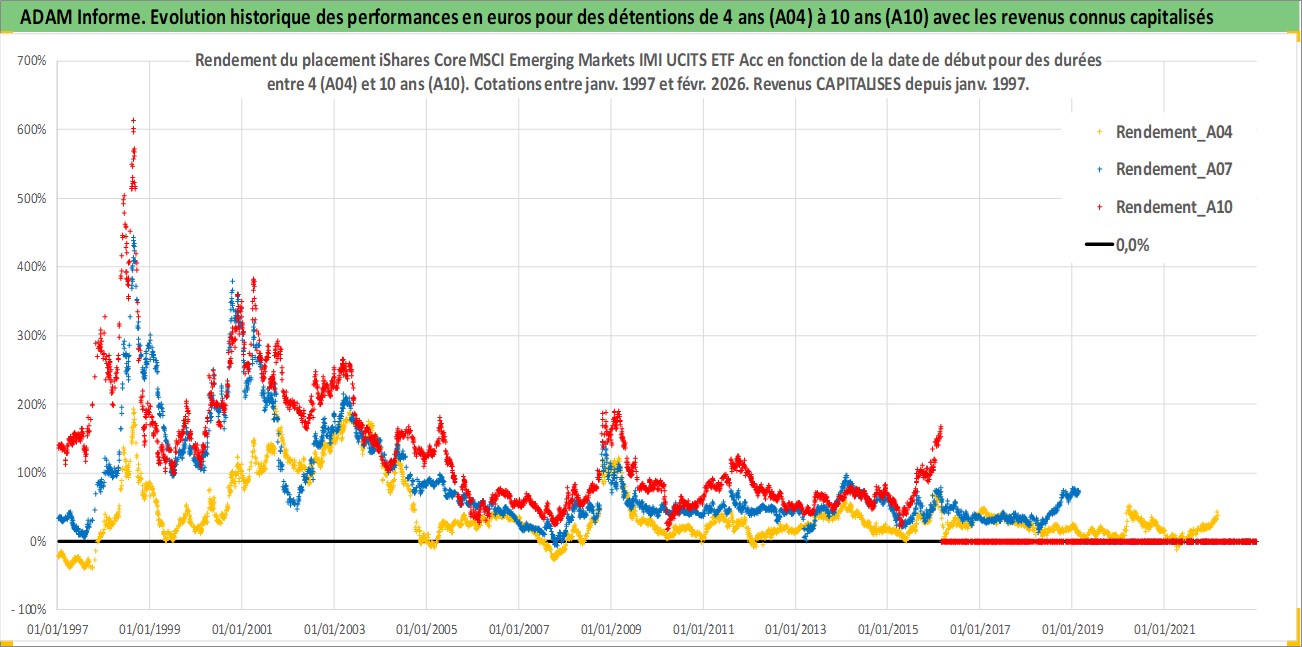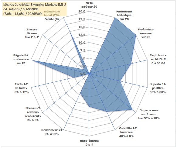 Site dédié aux investisseursPage dédiée sur site financeAnalyse des valorisations hebdomadaires du fonds iShares Core MSCI Emerging Markets IMI UCITS ETF Acc. Cet actif est cote en GBX. Les valorisations sont en contrevaleur EURO et couvrent les semaines 1997W01 a 2026W09. Les revenus de cet actif financier sont pris en compte depuis la semaine 1997W01. La note ESG de cet actif n'est pas connue.