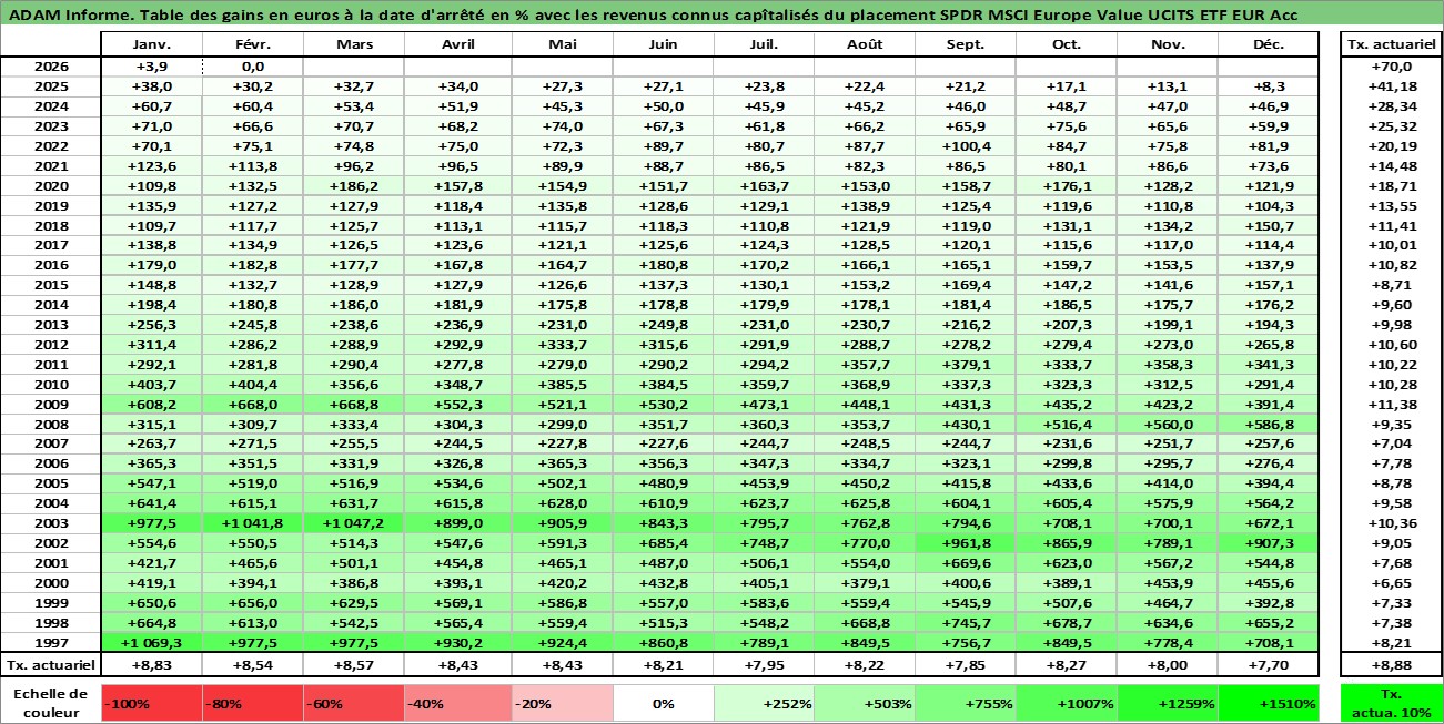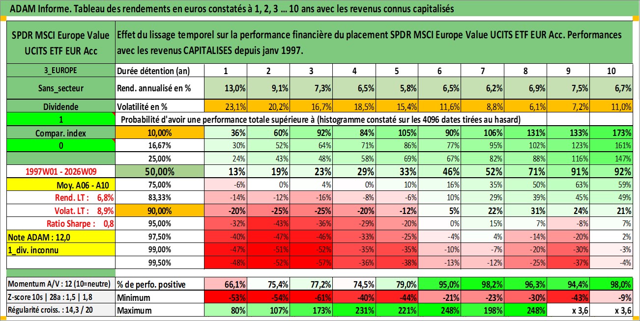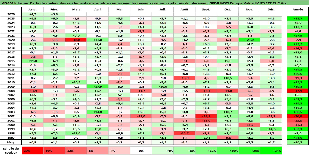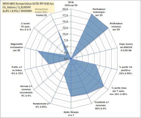 Site dédié aux investisseursPage dédiée sur site financeAnalyse des valorisations hebdomadaires du fonds SPDR MSCI Europe Value UCITS ETF EUR Acc. Cet actif est cote en EUR. Les valorisations couvrent les semaines 1997W01 a 2026W09. Les revenus de cet actif financier sont pris en compte depuis la semaine 1997W01. La note ESG de cet actif n'est pas connue.
