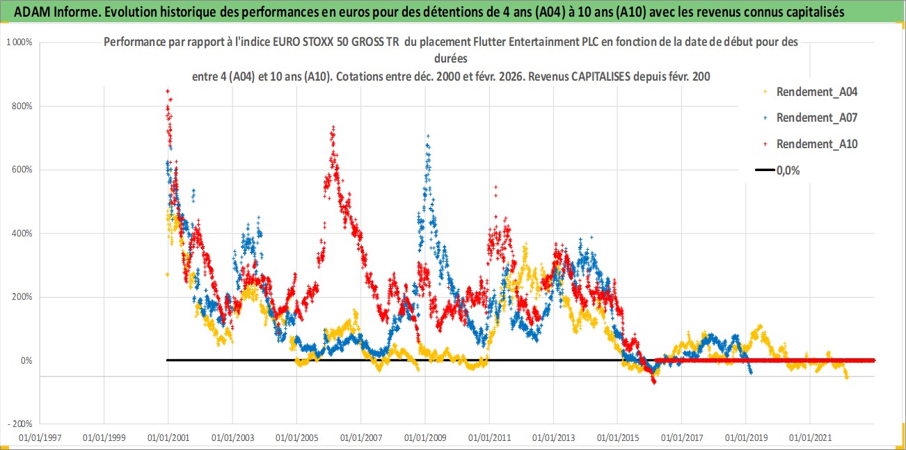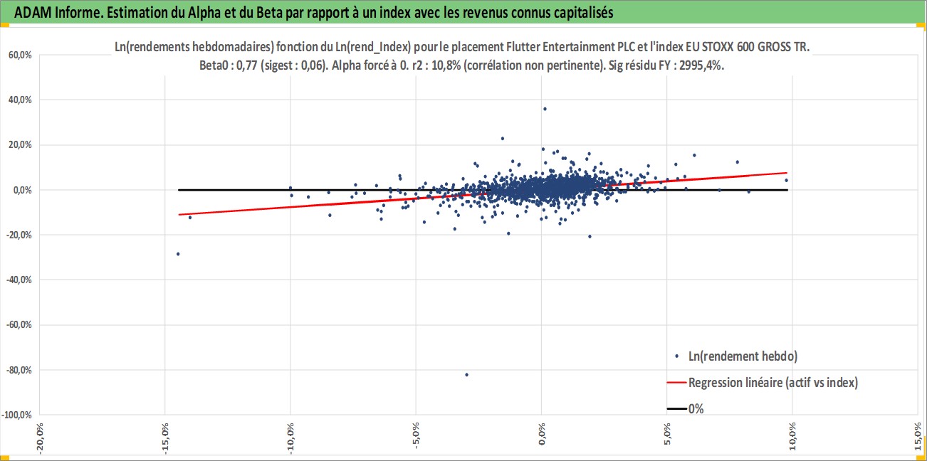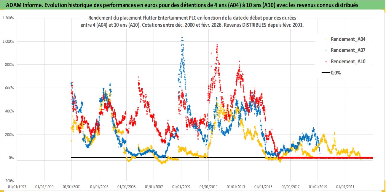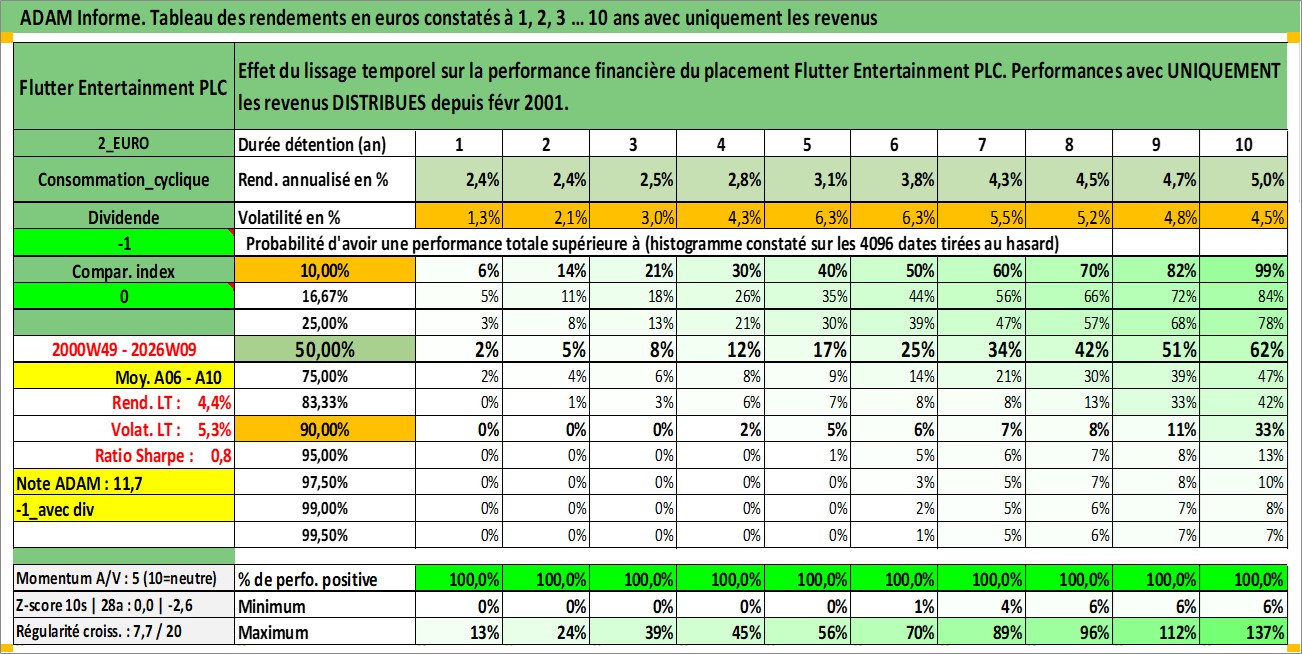 Site dédié aux investisseursPage dédiée sur site financeAnalyse des valorisations hebdomadaires de l'action Flutter Entertainment PLC. Cet actif est cote en GBX. Les valorisations sont en contrevaleur EURO et couvrent les semaines 2000W49 a 2026W09. Les revenus de cet actif financier sont pris en compte depuis la semaine 2001W09. La note globale ESG de cet actif est estimee a 7.0 (apres rebasage entre 0 et 20).