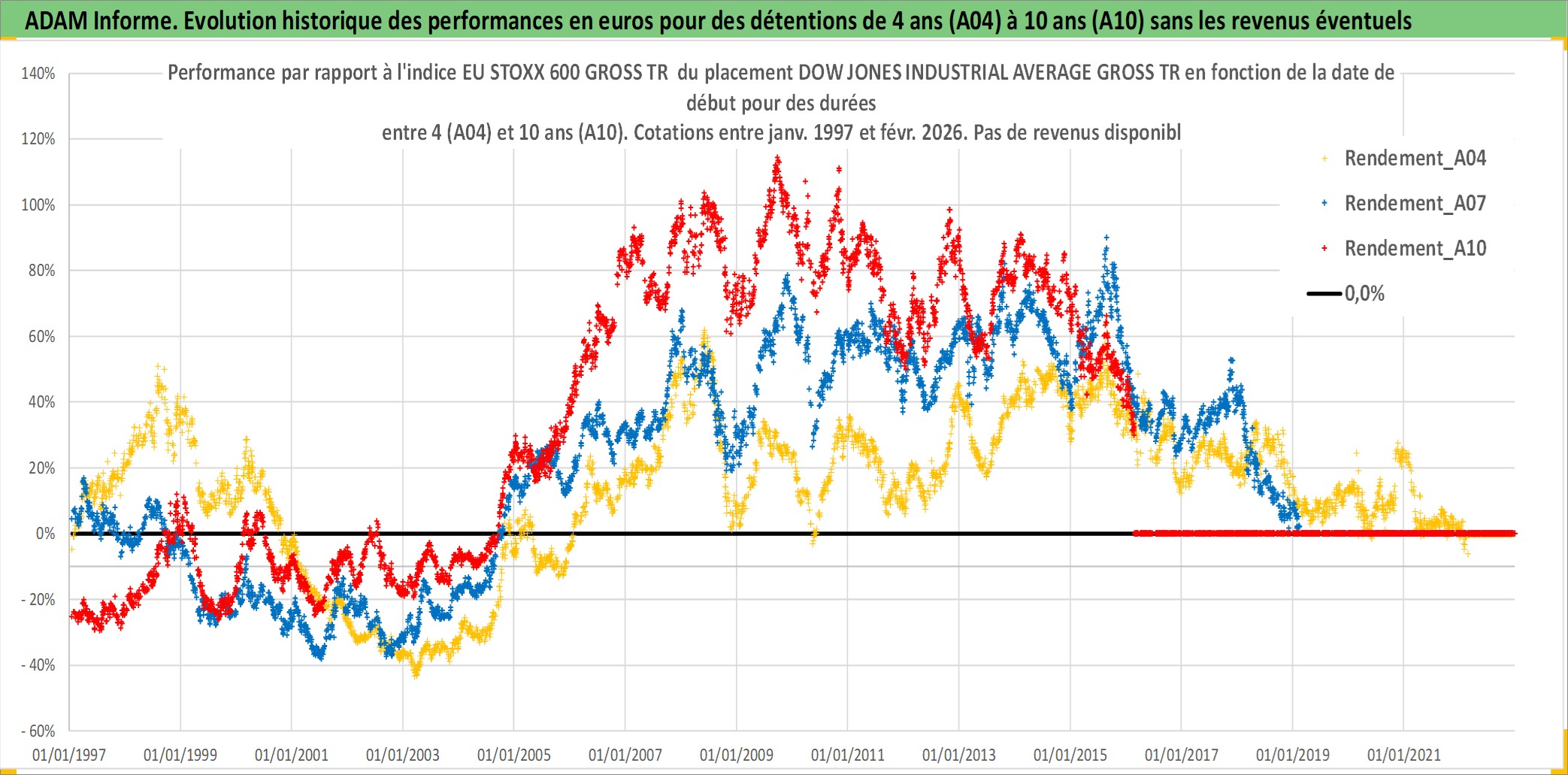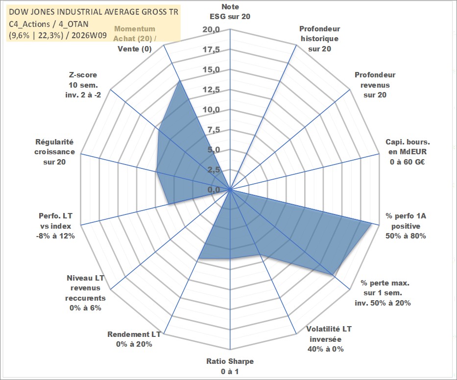 Site dédié aux investisseursPage dédiée sur site financeAnalyse des valorisations hebdomadaires de l'actif DOW JONES INDUSTRIAL AVERAGE GROSS TR. Cet actif est cote en USD. Les valorisations sont en contrevaleur EURO et couvrent les semaines 1997W01 a 2025W14. Les revenus de cet actif financier ne sont pas connus car non existants ou non disponibles sur le site Yahoo Finance. La note ESG de cet actif n'est pas connue.