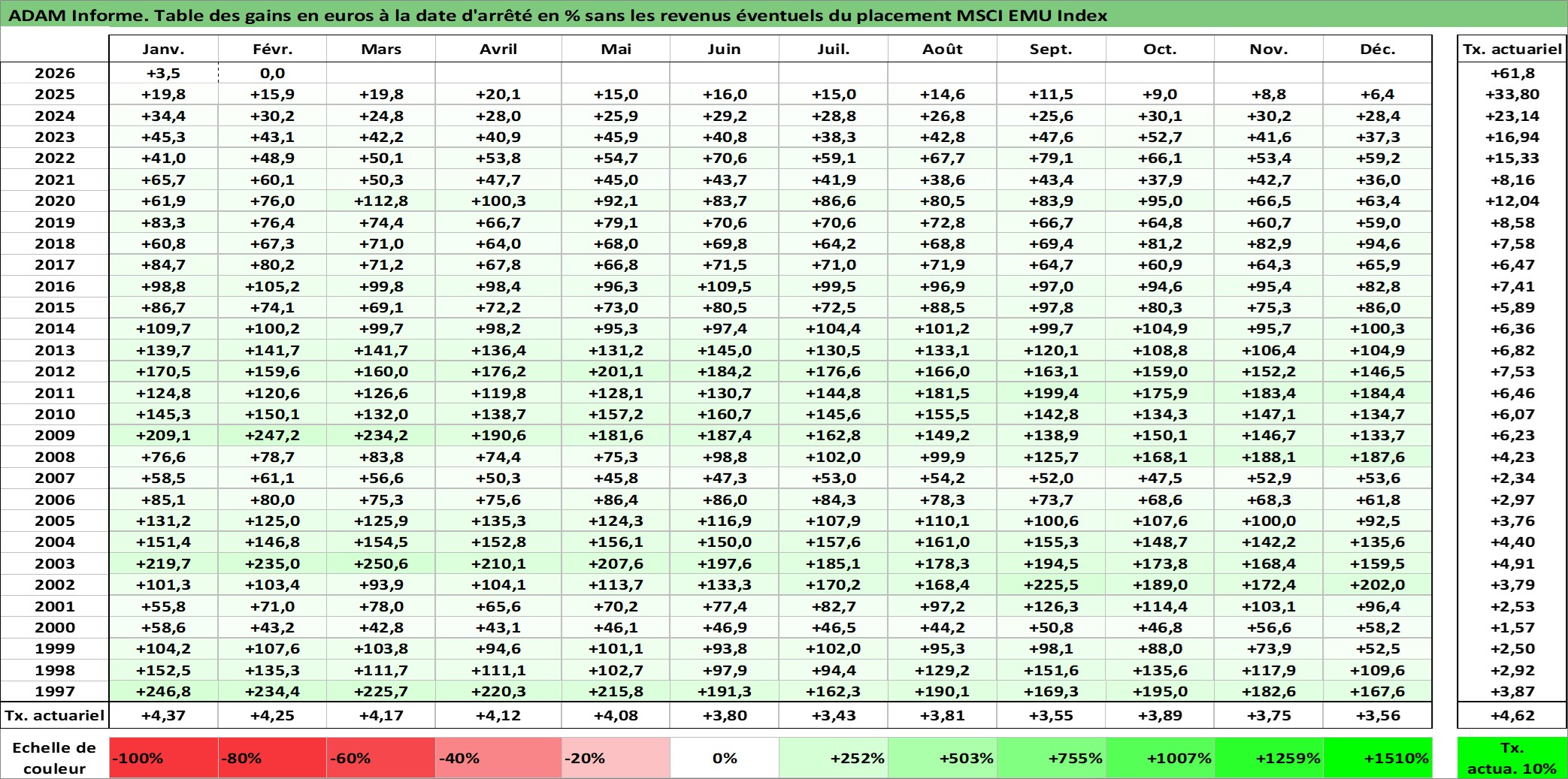 Dernière perfo 10 ans en %