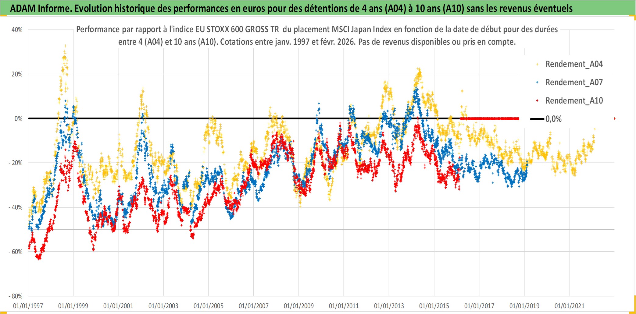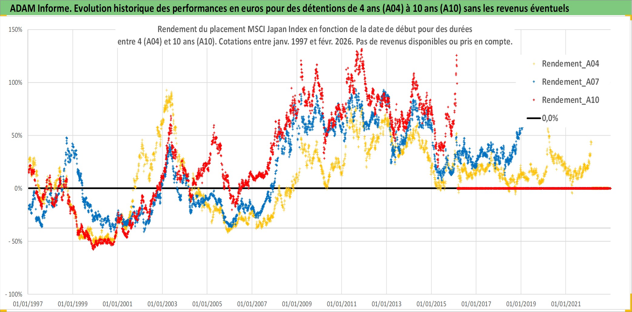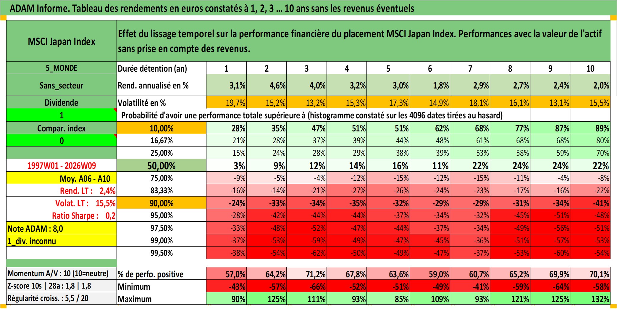 Site dédié aux investisseursPage dédiée sur site financeAnalyse des valorisations hebdomadaires de l'actif MSCI Japan Index. Cet actif est cote en JPY. Les valorisations sont en contrevaleur EURO et couvrent les semaines 1997W01 a 2026W09. Les revenus de cet actif financier ne sont pas connus car non existants ou non disponibles sur le site Yahoo Finance. La note ESG de cet actif n'est pas connue.