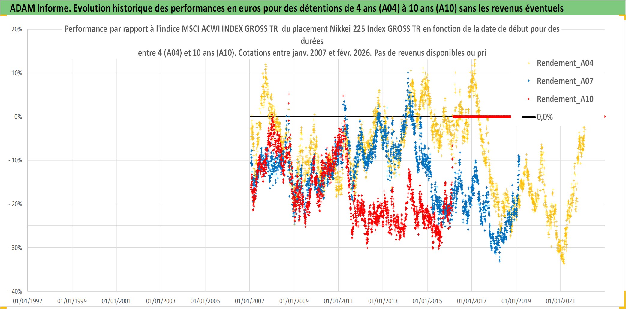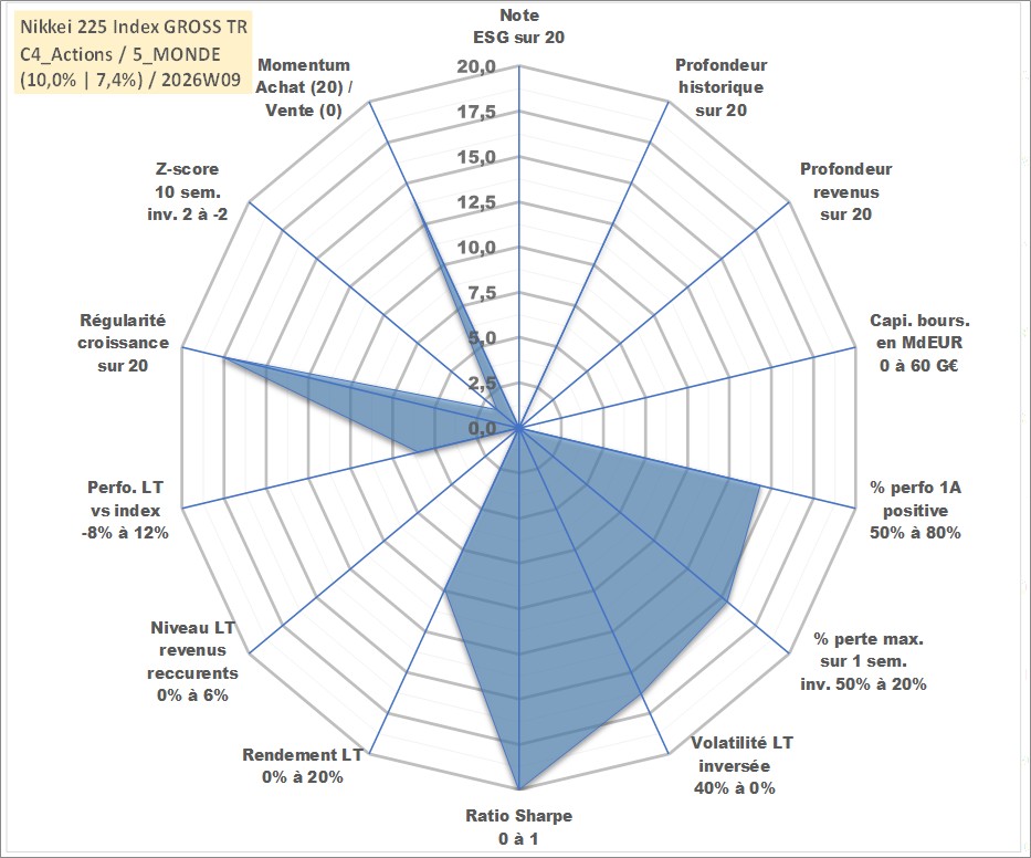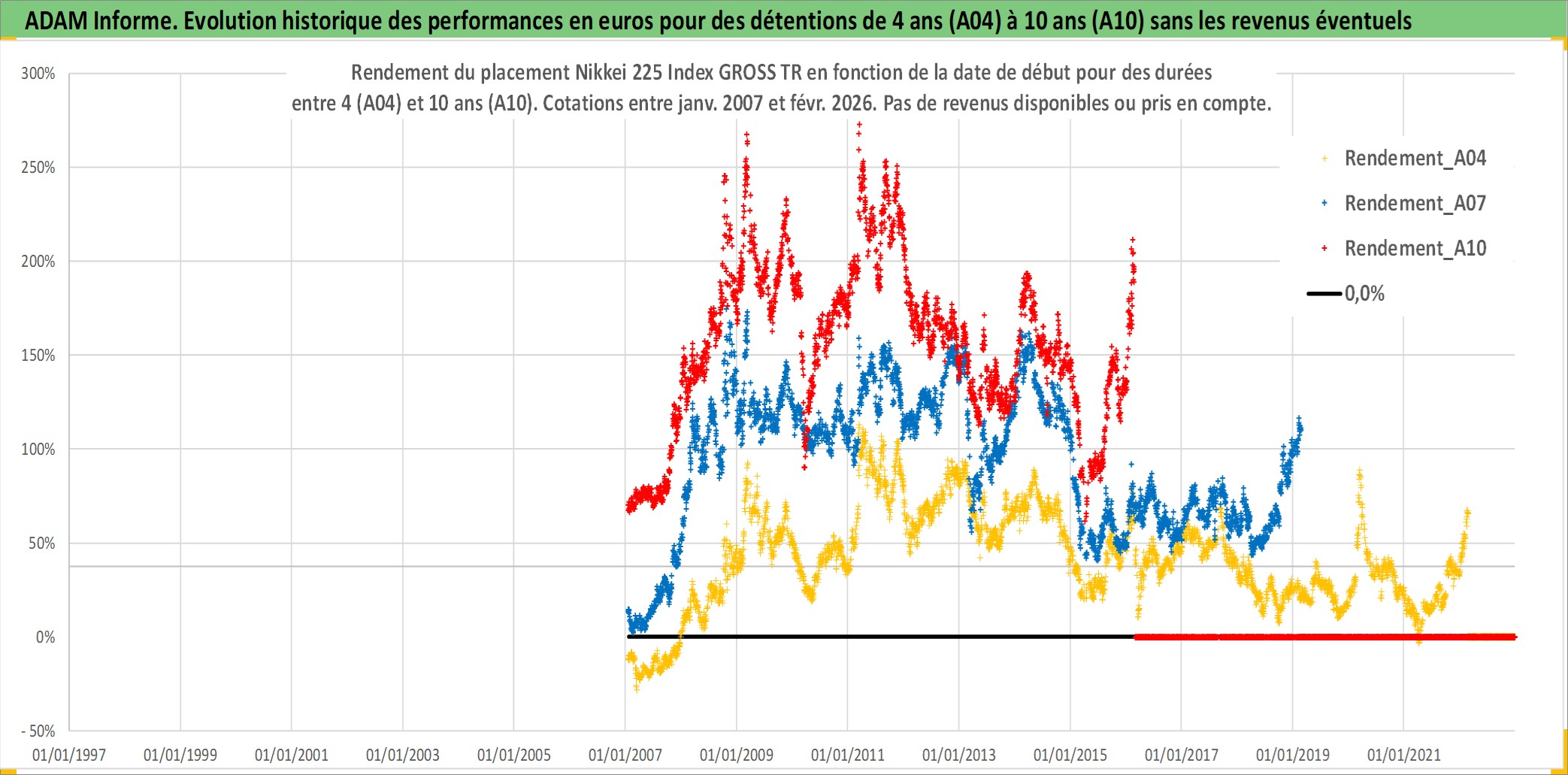 Site dédié aux investisseursPage dédiée sur site financeAnalyse des valorisations hebdomadaires de l'actif Nikkei 225 Index GROSS TR. Cet actif est cote en JPY. Les valorisations sont en contrevaleur EURO et couvrent les semaines 2007W02 a 2026W09. Les revenus de cet actif financier ne sont pas connus car non existants ou non disponibles sur le site Yahoo Finance. La note ESG de cet actif n'est pas connue.
