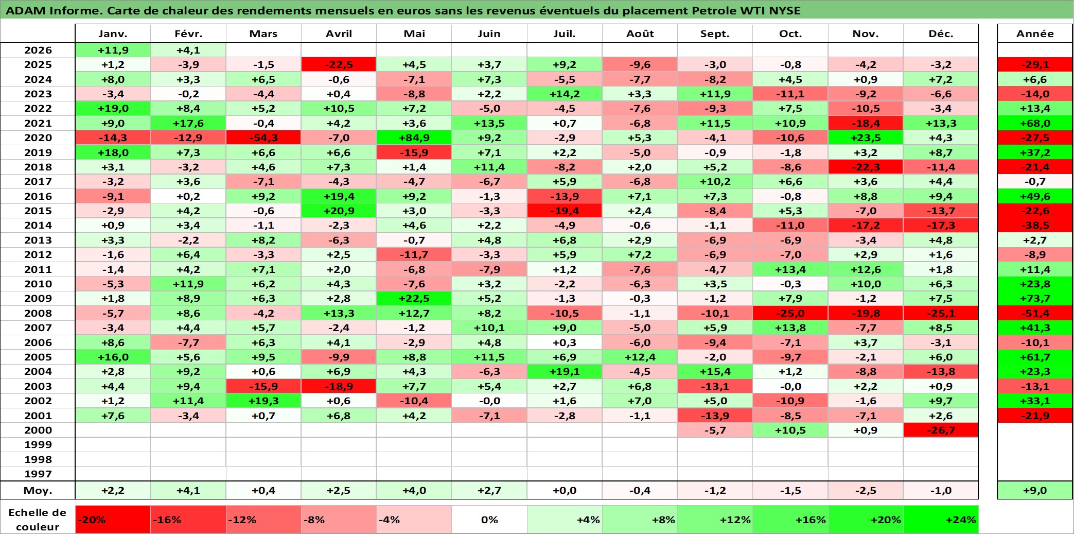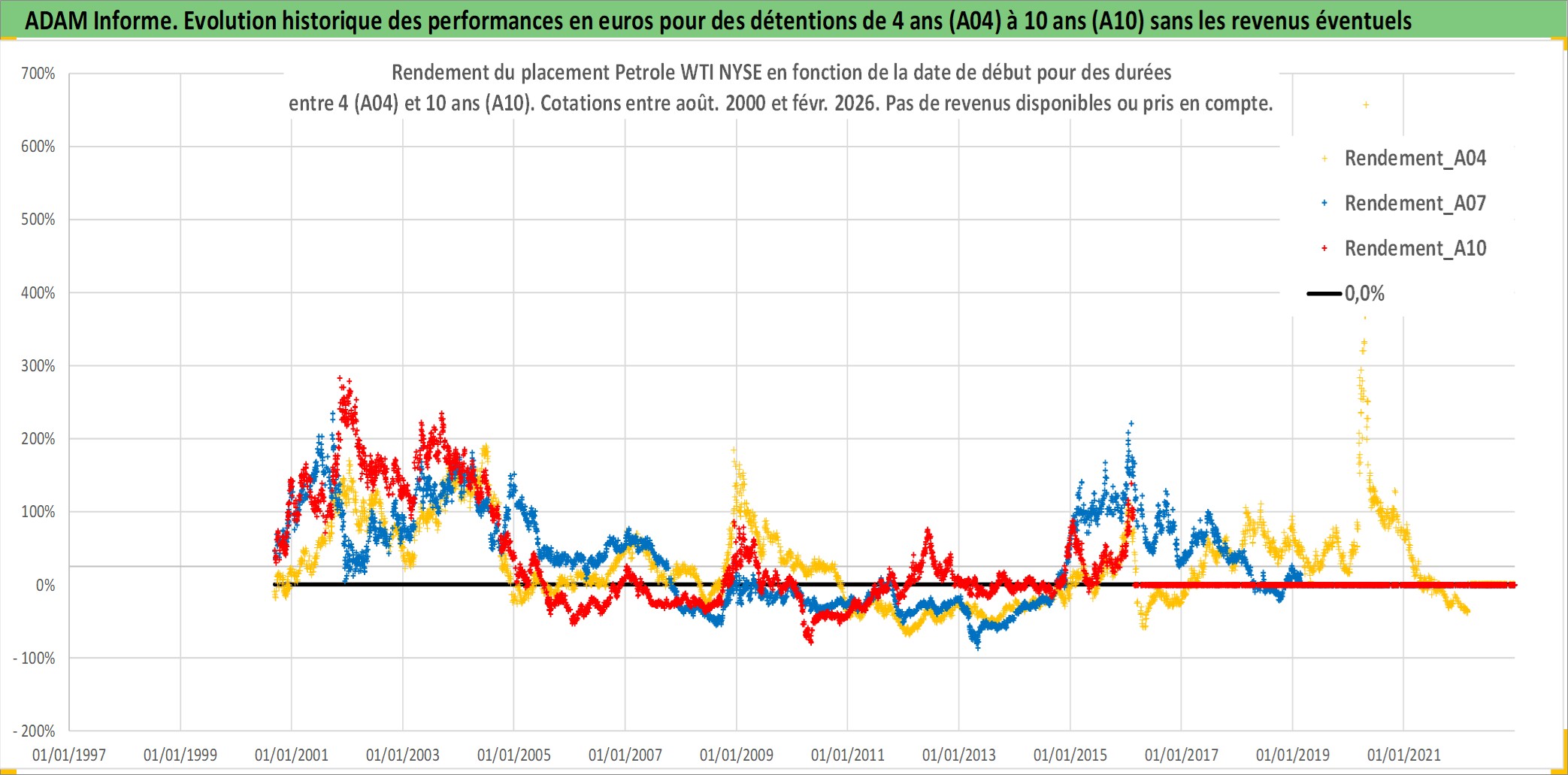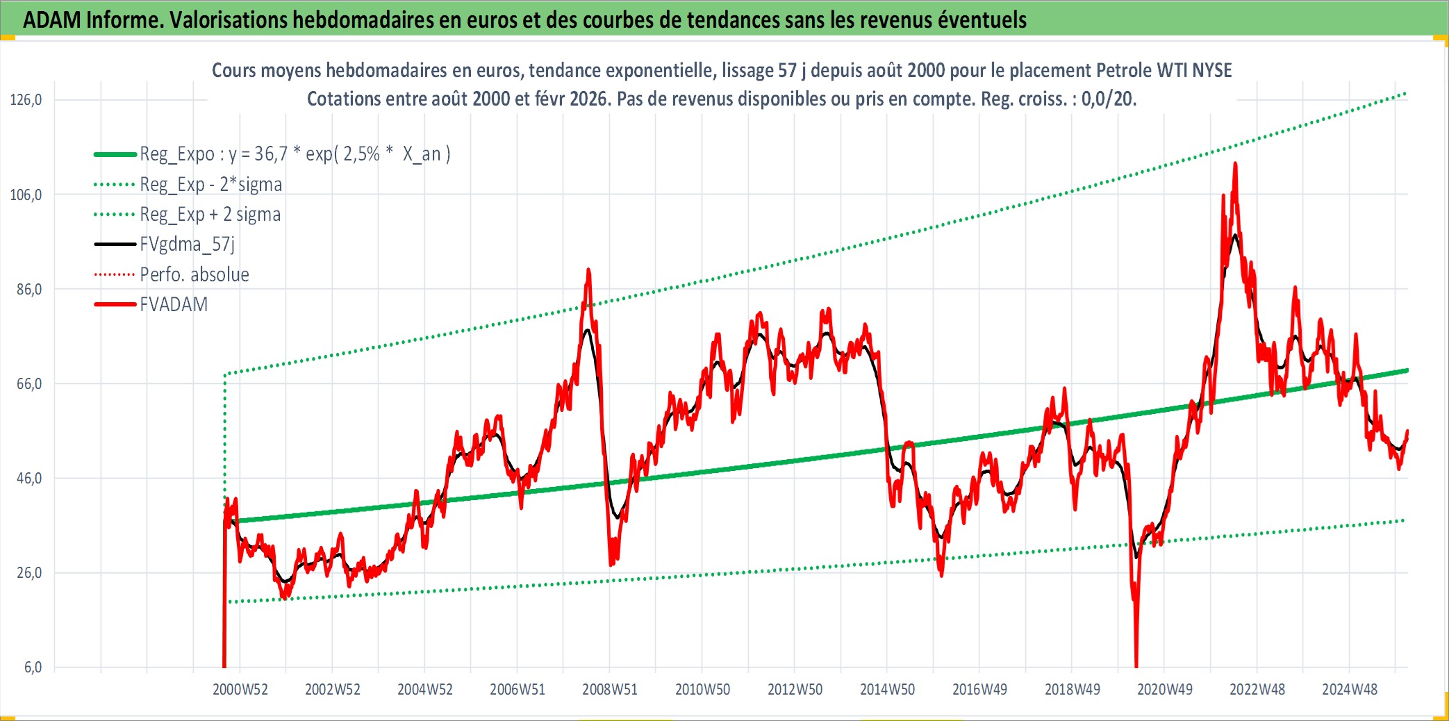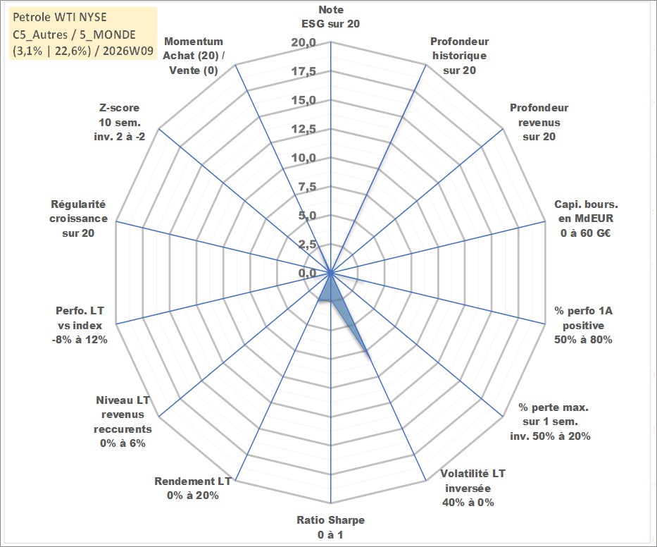 Site dédié aux investisseursPage dédiée sur site financeAnalyse des valorisations hebdomadaires de l'actif Petrole WTI NYSE. Cet actif est cote en USD. Les valorisations sont en contrevaleur EURO et couvrent les semaines 2000W35 a 2026W09. Les revenus de cet actif financier ne sont pas connus car non existants ou non disponibles sur le site Yahoo Finance. La note ESG de cet actif n'est pas connue.