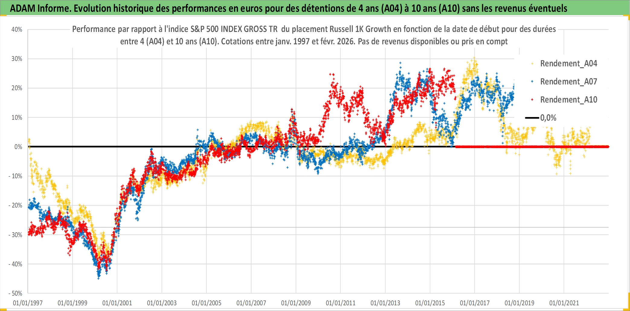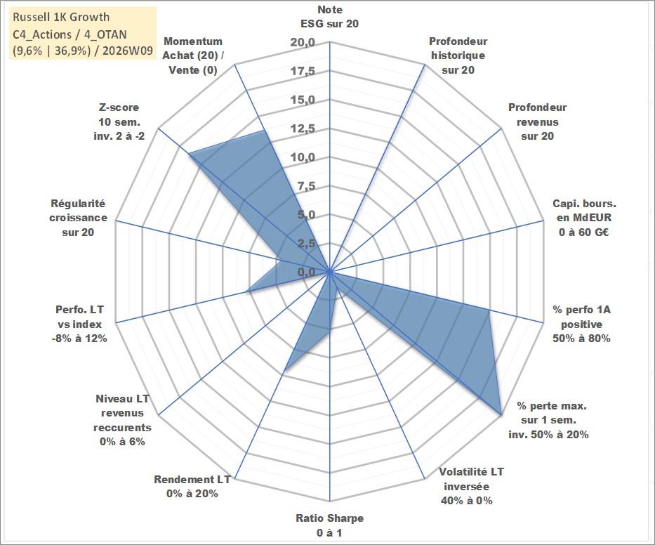 Site dédié aux investisseursPage dédiée sur site financeAnalyse des valorisations hebdomadaires de l'actif Russell 1K Growth. Cet actif est cote en USD. Les valorisations sont en contrevaleur EURO et couvrent les semaines 1997W01 a 2026W09. Les revenus de cet actif financier ne sont pas connus car non existants ou non disponibles sur le site Yahoo Finance. La note ESG de cet actif n'est pas connue.