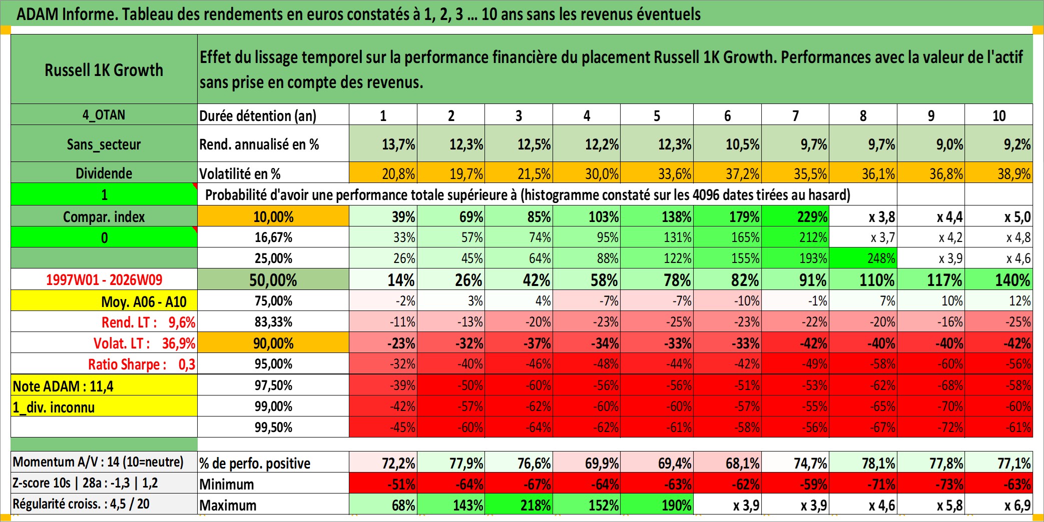 Dernière perfo 10 ans en %
