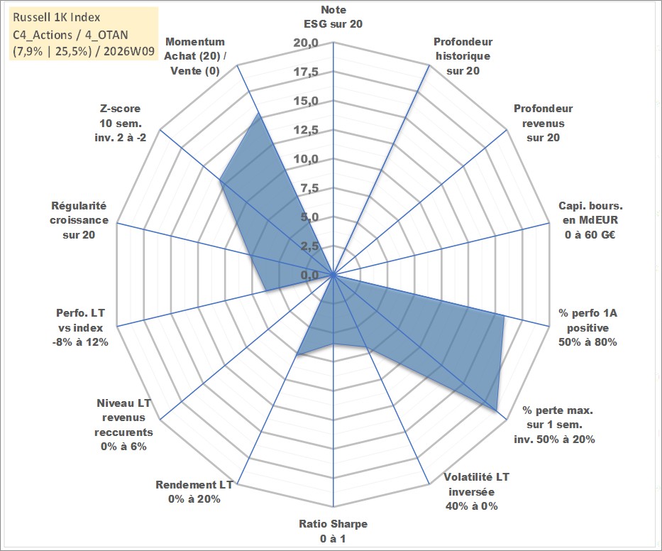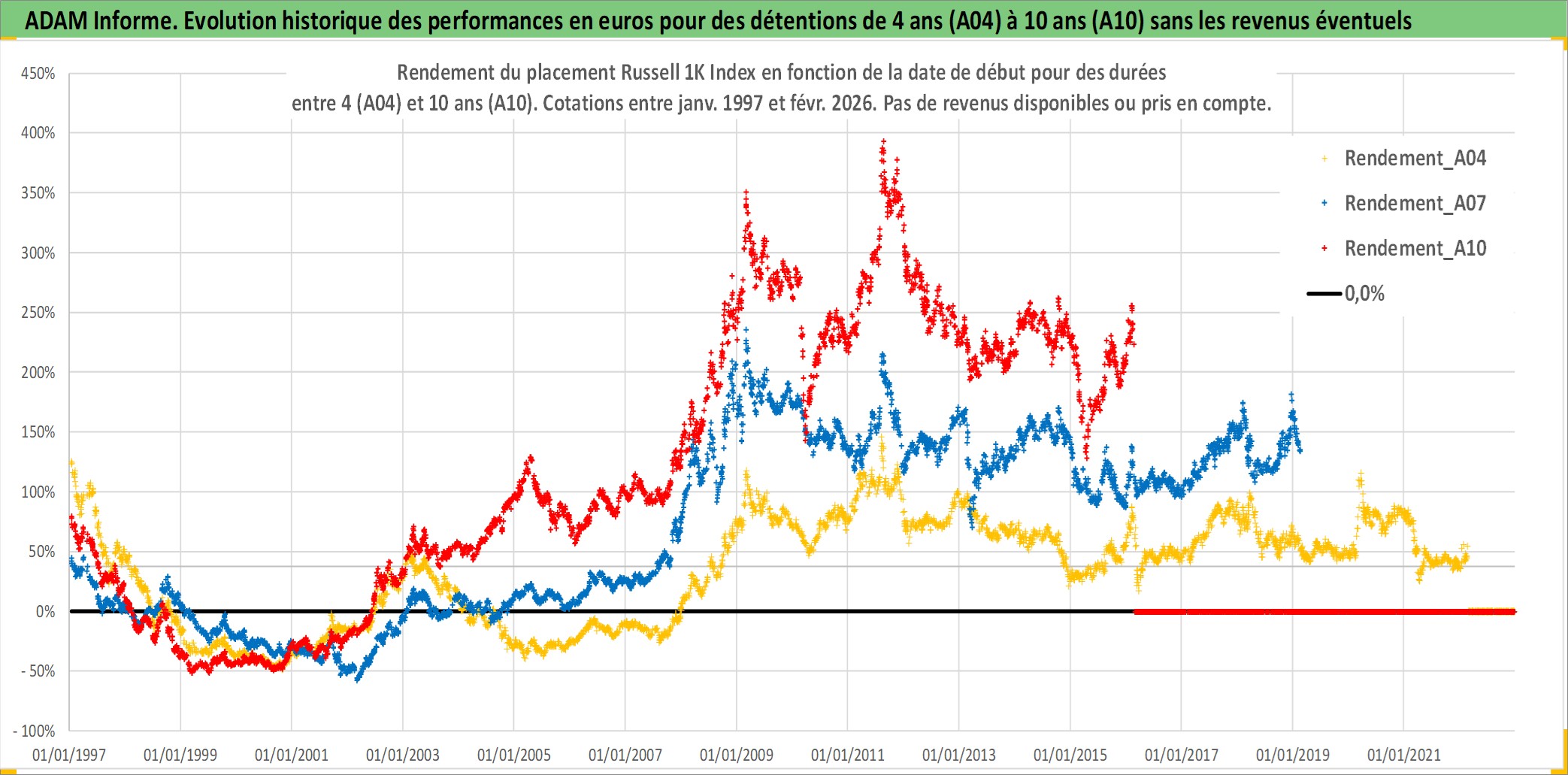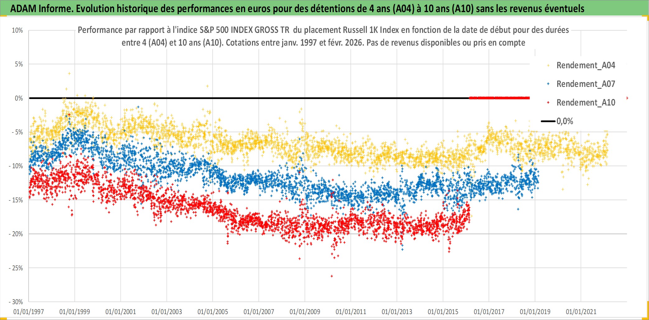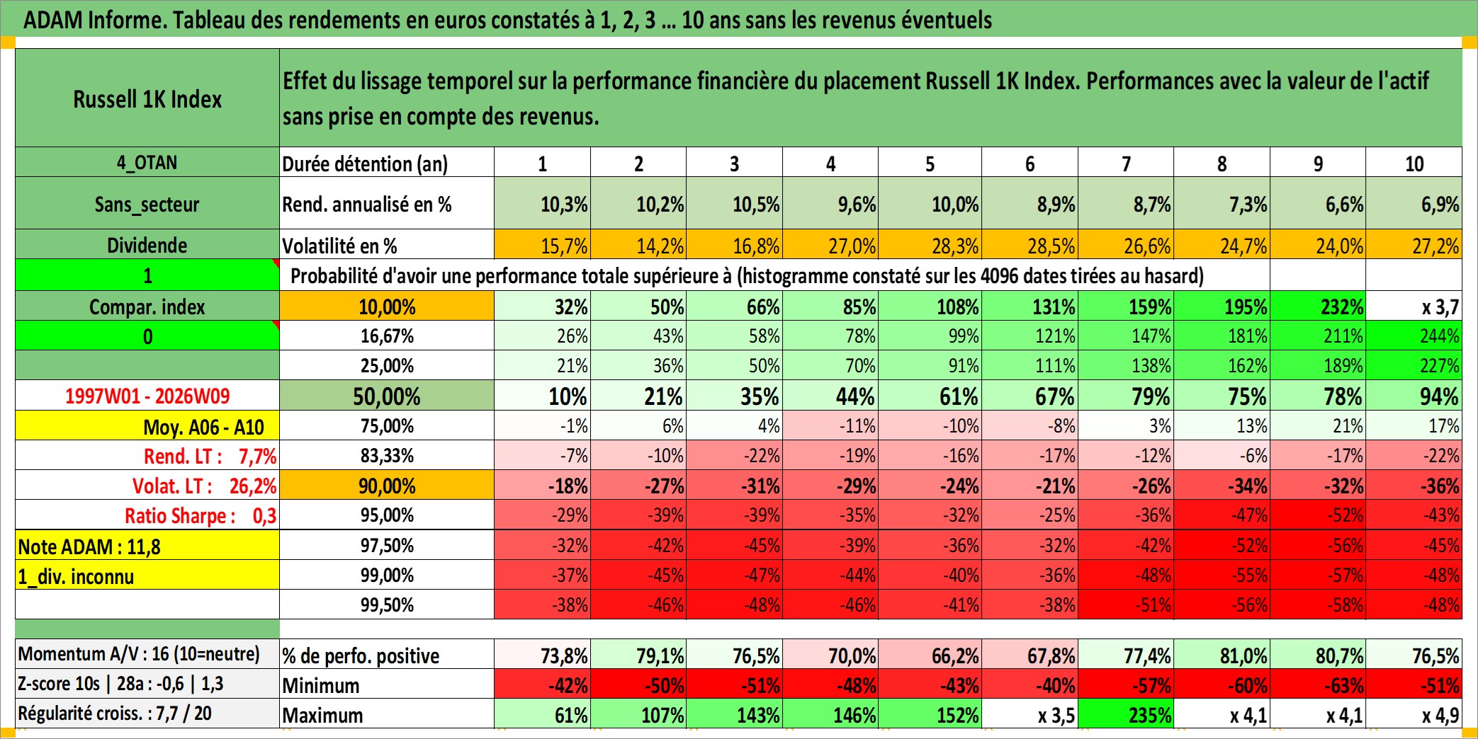 Site dédié aux investisseursPage dédiée sur site financeAnalyse des valorisations hebdomadaires de l'actif Russell 1K Index. Cet actif est cote en USD. Les valorisations sont en contrevaleur EURO et couvrent les semaines 1997W01 a 2026W09. Les revenus de cet actif financier ne sont pas connus car non existants ou non disponibles sur le site Yahoo Finance. La note ESG de cet actif n'est pas connue.