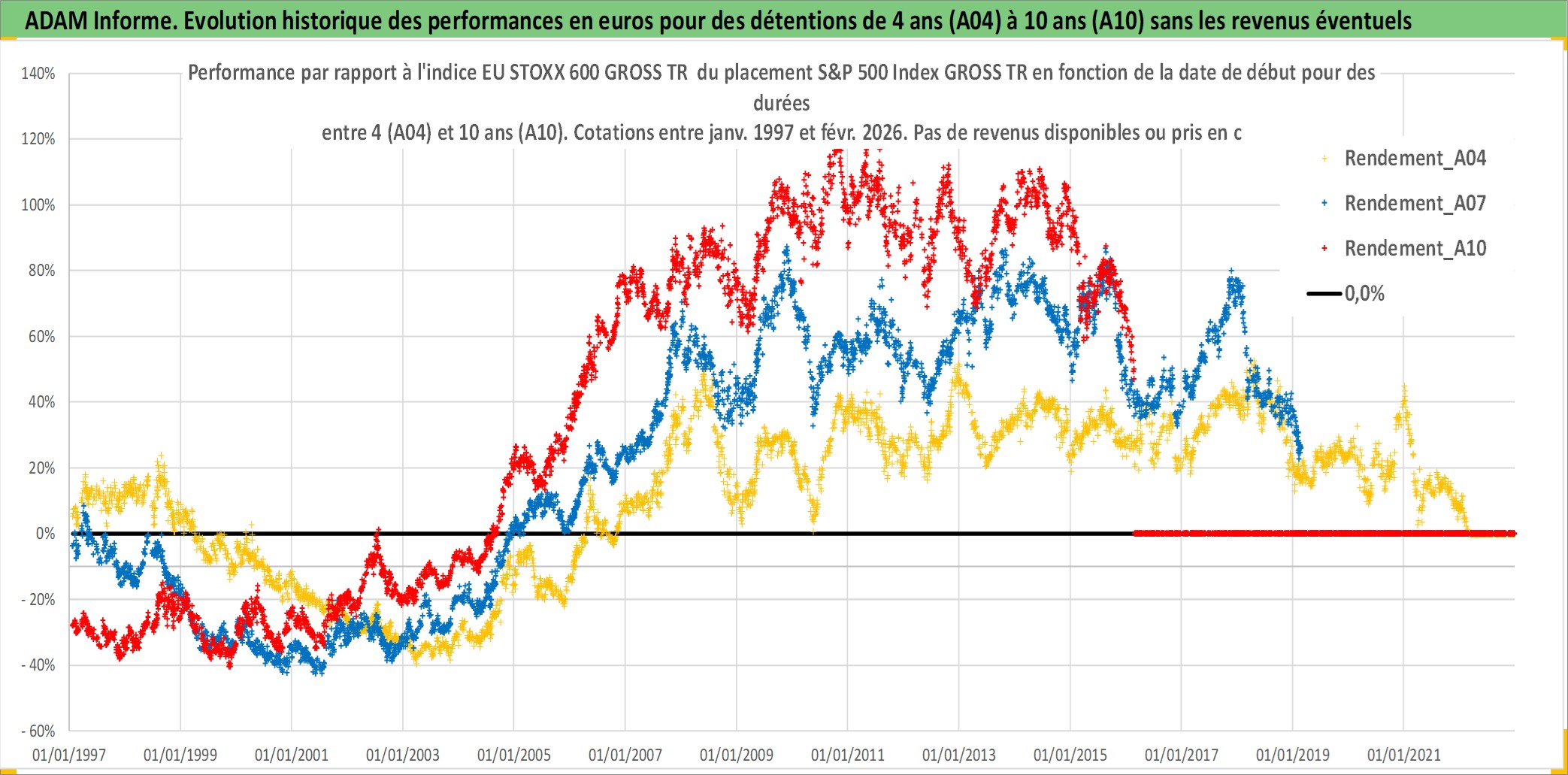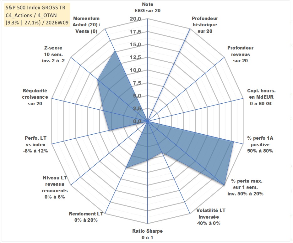 Site dédié aux investisseursPage dédiée sur site financeAnalyse des valorisations hebdomadaires de l'actif S&P 500 Index GROSS TR. Cet actif est cote en USD. Les valorisations sont en contrevaleur EURO et couvrent les semaines 1997W01 a 2026W09. Les revenus de cet actif financier ne sont pas connus car non existants ou non disponibles sur le site Yahoo Finance. La note ESG de cet actif n'est pas connue.