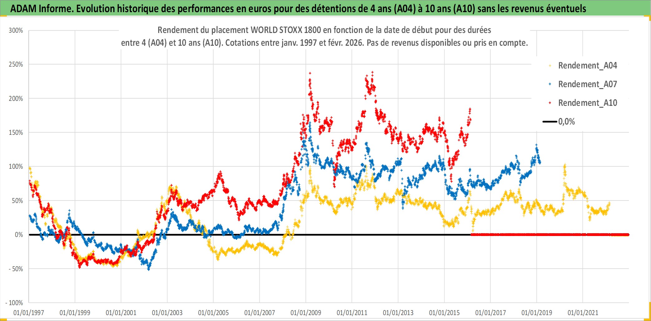 Site dédié aux investisseursPage dédiée sur site financeAnalyse des valorisations hebdomadaires de l'actif WORLD STOXX 1800. Cet actif est cote en USD. Les valorisations sont en contrevaleur EURO et couvrent les semaines 1997W01 a 2026W09. Les revenus de cet actif financier ne sont pas connus car non existants ou non disponibles sur le site Yahoo Finance. La note ESG de cet actif n'est pas connue.
