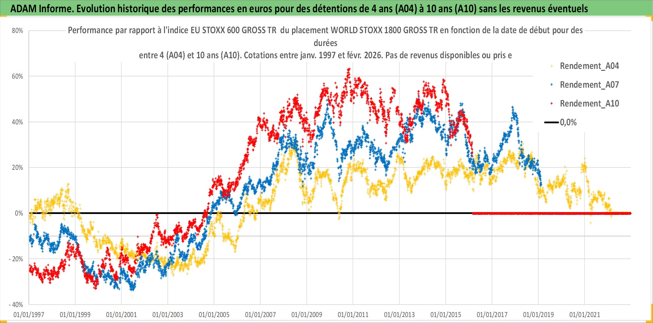 Site dédié aux investisseursPage dédiée sur site financeAnalyse des valorisations hebdomadaires de l'actif WORLD STOXX 1800 GROSS TR. Cet actif est cote en USD. Les valorisations sont en contrevaleur EURO et couvrent les semaines 1997W01 a 2026W09. Les revenus de cet actif financier ne sont pas connus car non existants ou non disponibles sur le site Yahoo Finance. La note ESG de cet actif n'est pas connue.