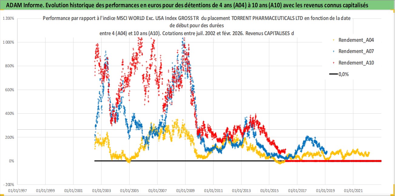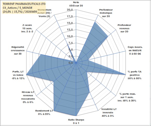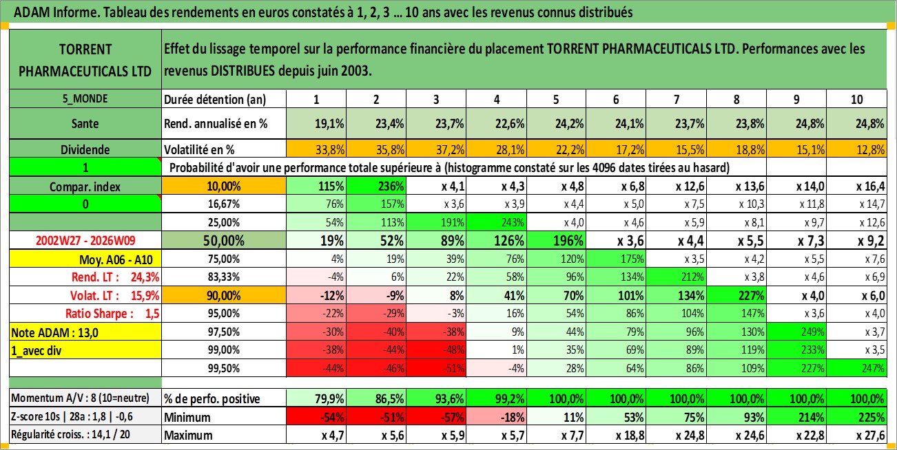 Site dédié aux investisseursPage dédiée sur site financeAnalyse des valorisations hebdomadaires de l'action TORRENT PHARMACEUTICALS LTD. Cet actif est cote en INR. Les valorisations sont en contrevaleur EURO et couvrent les semaines 2002W27 a 2026W09. Les revenus de cet actif financier sont pris en compte depuis la semaine 2003W24. La note ESG de cet actif n'est pas connue.