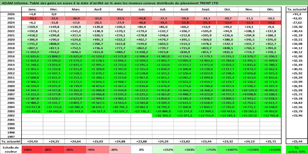 Rendement LT %