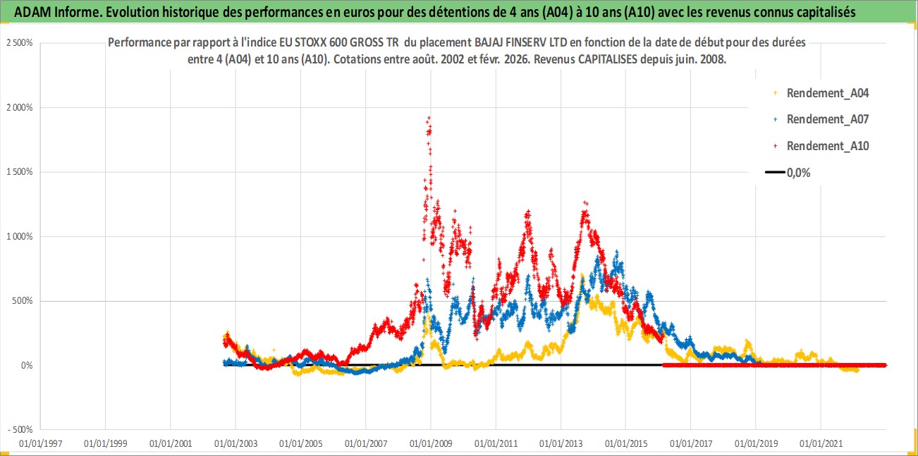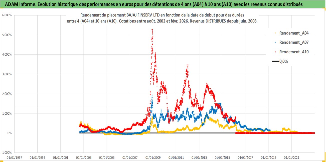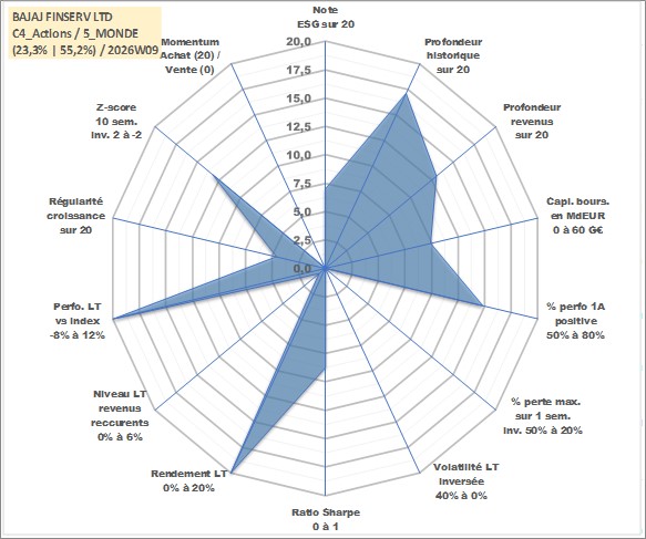 Site dédié aux investisseursPage dédiée sur site financeAnalyse des valorisations hebdomadaires de l'action BAJAJ FINSERV LTD. Cet actif est cote en INR. Les valorisations sont en contrevaleur EURO et couvrent les semaines 2002W33 a 2026W09. Les revenus de cet actif financier sont pris en compte depuis la semaine 2008W26. La note globale ESG de cet actif est estimee a 7.0 (apres rebasage entre 0 et 20).