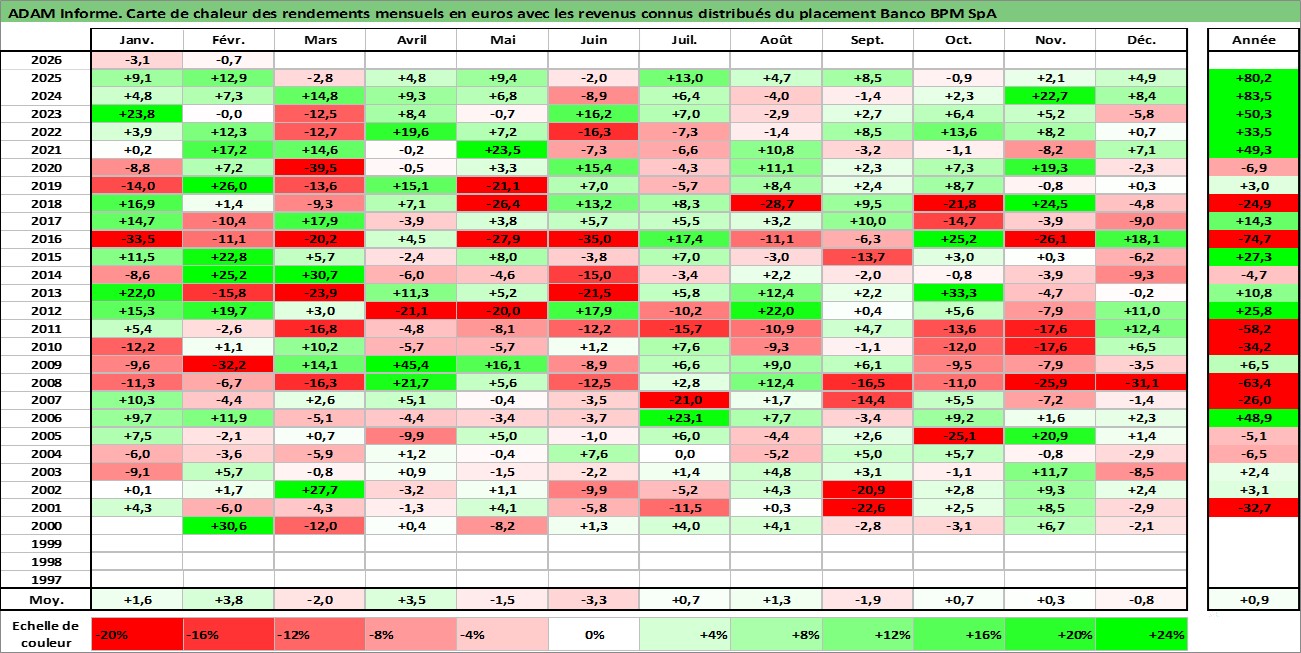Site dédié aux investisseursPage dédiée sur site financeAnalyse des valorisations hebdomadaires de l'action Banco BPM SpA. Cet actif est cote en EUR. Les valorisations couvrent les semaines 2000W01 a 2026W09. Les revenus de cet actif financier sont pris en compte depuis la semaine 2003W21. La note ESG de cet actif n'est pas connue.