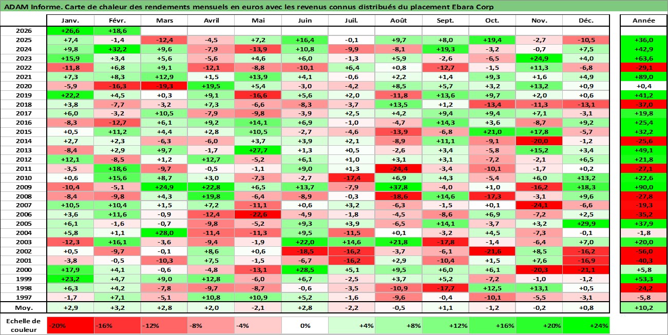 Site dédié aux investisseursPage dédiée sur site financeAnalyse des valorisations hebdomadaires de l'action Ebara Corp. Cet actif est cote en JPY. Les valorisations sont en contrevaleur EURO et couvrent les semaines 1997W01 a 2026W09. Les revenus de cet actif financier sont pris en compte depuis la semaine 1997W13. La note ESG de cet actif n'est pas connue.