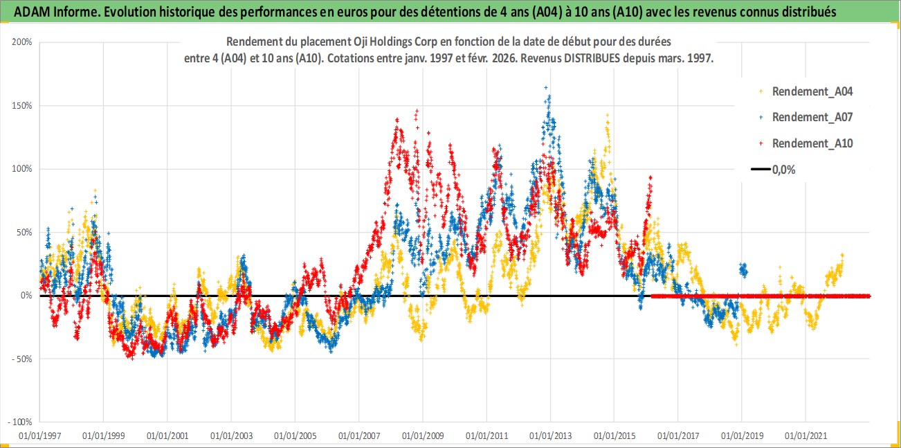 Site dédié aux investisseursPage dédiée sur site financeAnalyse des valorisations hebdomadaires de l'action Oji Holdings Corp. Cet actif est cote en JPY. Les valorisations sont en contrevaleur EURO et couvrent les semaines 1997W01 a 2026W09. Les revenus de cet actif financier sont pris en compte depuis la semaine 1997W13. La note ESG de cet actif n'est pas connue.