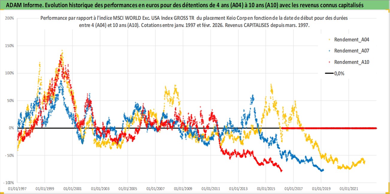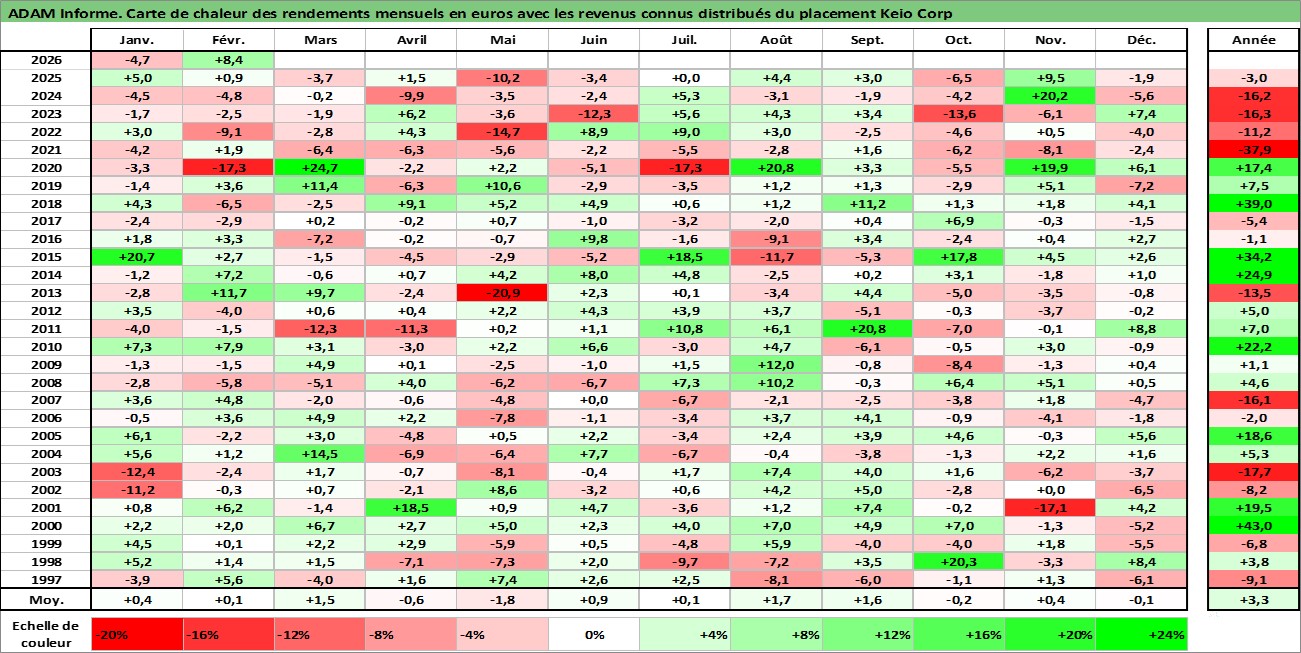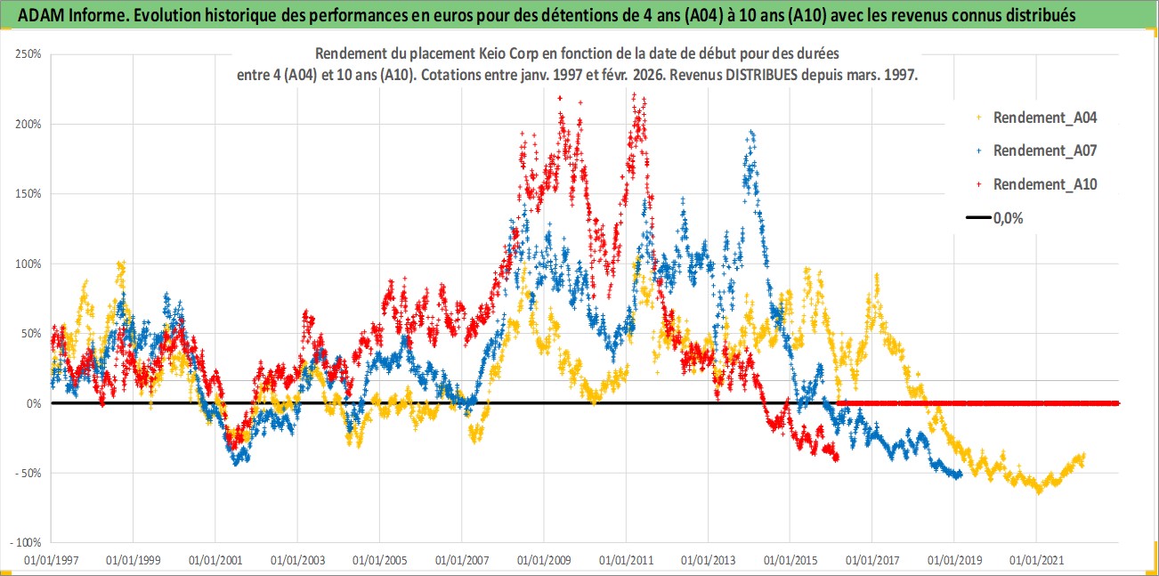 Site dédié aux investisseursPage dédiée sur site financeAnalyse des valorisations hebdomadaires de l'action Keio Corp. Cet actif est cote en JPY. Les valorisations sont en contrevaleur EURO et couvrent les semaines 1997W01 a 2026W09. Les revenus de cet actif financier sont pris en compte depuis la semaine 1997W13. La note ESG de cet actif n'est pas connue.