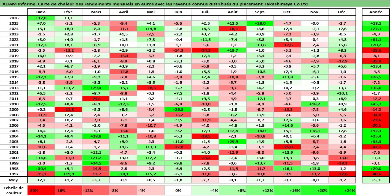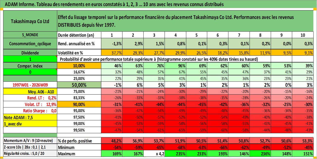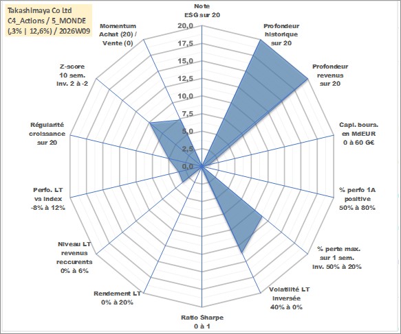 Site dédié aux investisseursPage dédiée sur site financeAnalyse des valorisations hebdomadaires de l'action Takashimaya Co Ltd. Cet actif est cote en JPY. Les valorisations sont en contrevaleur EURO et couvrent les semaines 1997W01 a 2026W09. Les revenus de cet actif financier sont pris en compte depuis la semaine 1997W09. La note ESG de cet actif n'est pas connue.