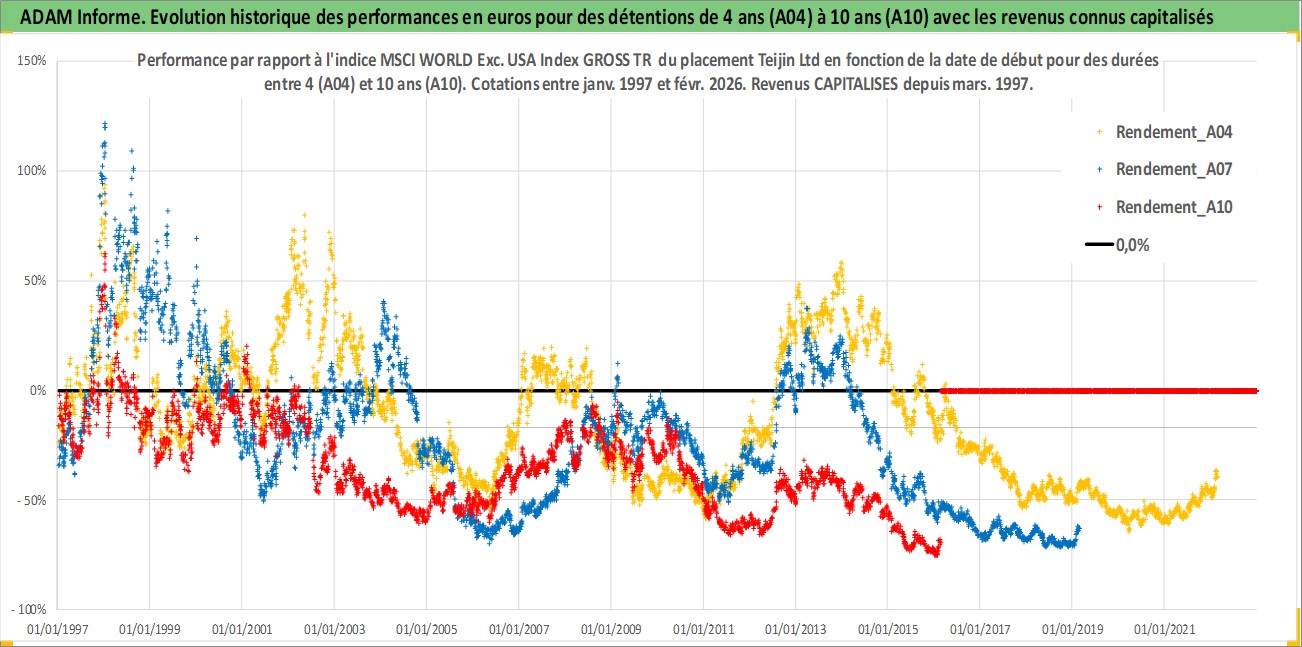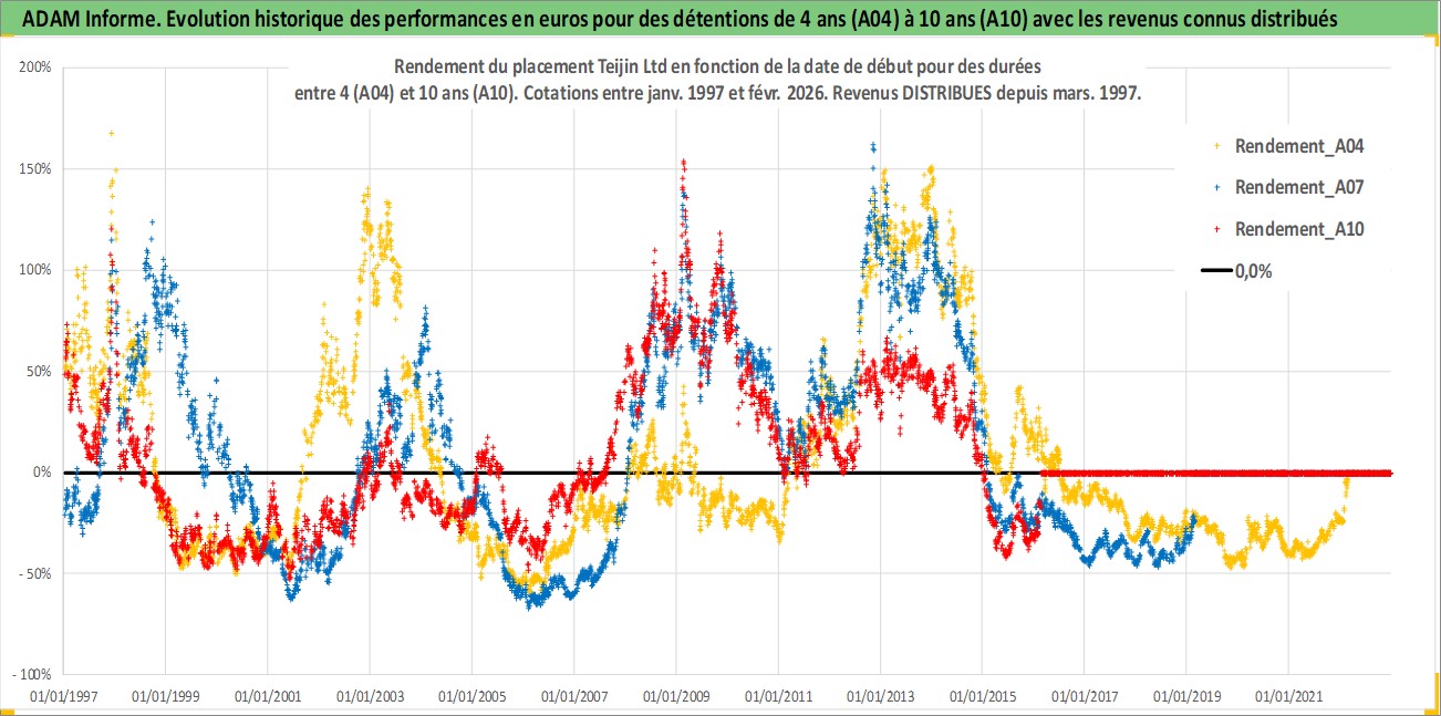 Site dédié aux investisseursPage dédiée sur site financeAnalyse des valorisations hebdomadaires de l'action Teijin Ltd. Cet actif est cote en JPY. Les valorisations sont en contrevaleur EURO et couvrent les semaines 1997W01 a 2026W09. Les revenus de cet actif financier sont pris en compte depuis la semaine 1997W13. La note ESG de cet actif n'est pas connue.