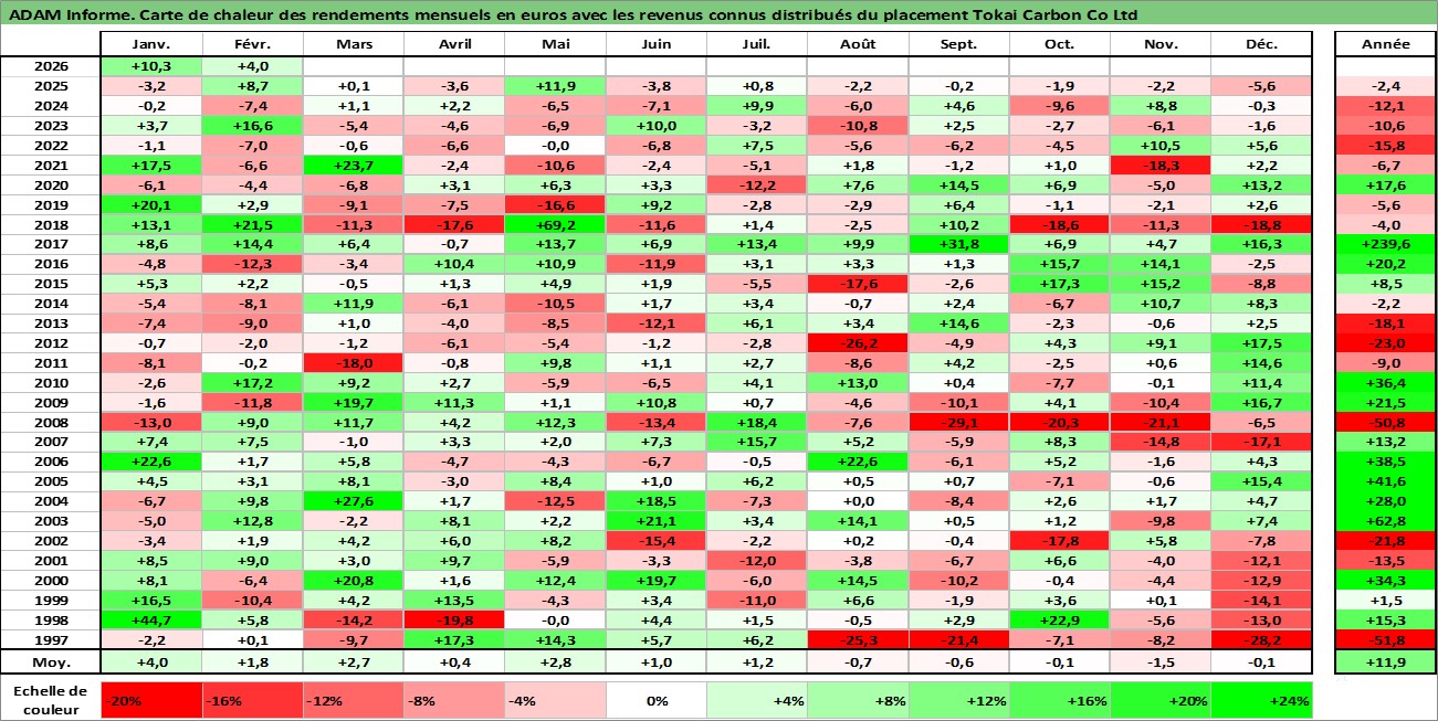 Site dédié aux investisseursPage dédiée sur site financeAnalyse des valorisations hebdomadaires de l'action Tokai Carbon Co Ltd. Cet actif est cote en JPY. Les valorisations sont en contrevaleur EURO et couvrent les semaines 1997W01 a 2026W09. Les revenus de cet actif financier sont pris en compte depuis la semaine 1997W26. La note ESG de cet actif n'est pas connue.