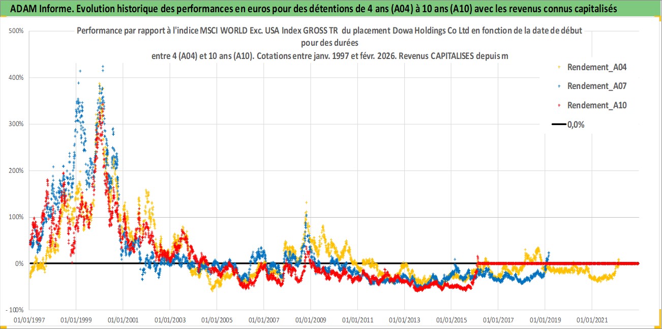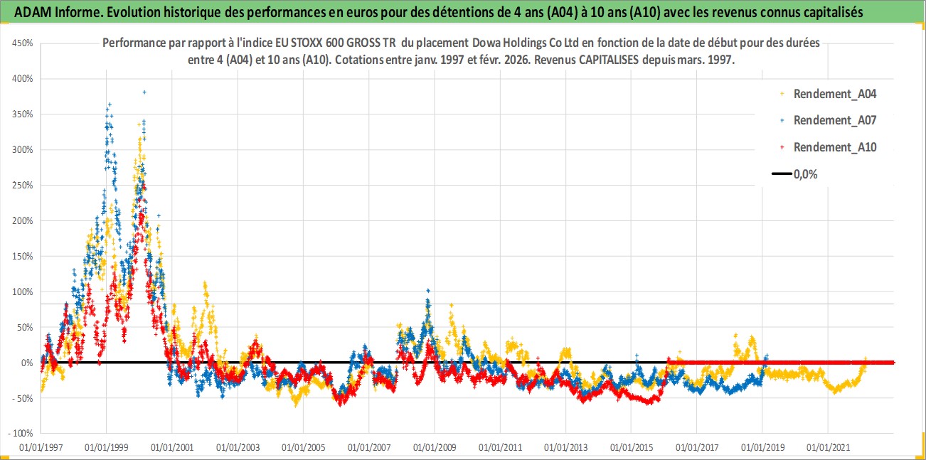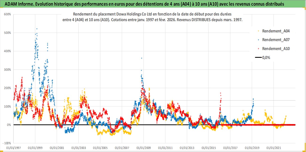 Site dédié aux investisseursPage dédiée sur site financeAnalyse des valorisations hebdomadaires de l'action Dowa Holdings Co Ltd. Cet actif est cote en JPY. Les valorisations sont en contrevaleur EURO et couvrent les semaines 1997W01 a 2026W09. Les revenus de cet actif financier sont pris en compte depuis la semaine 1997W13. La note ESG de cet actif n'est pas connue.