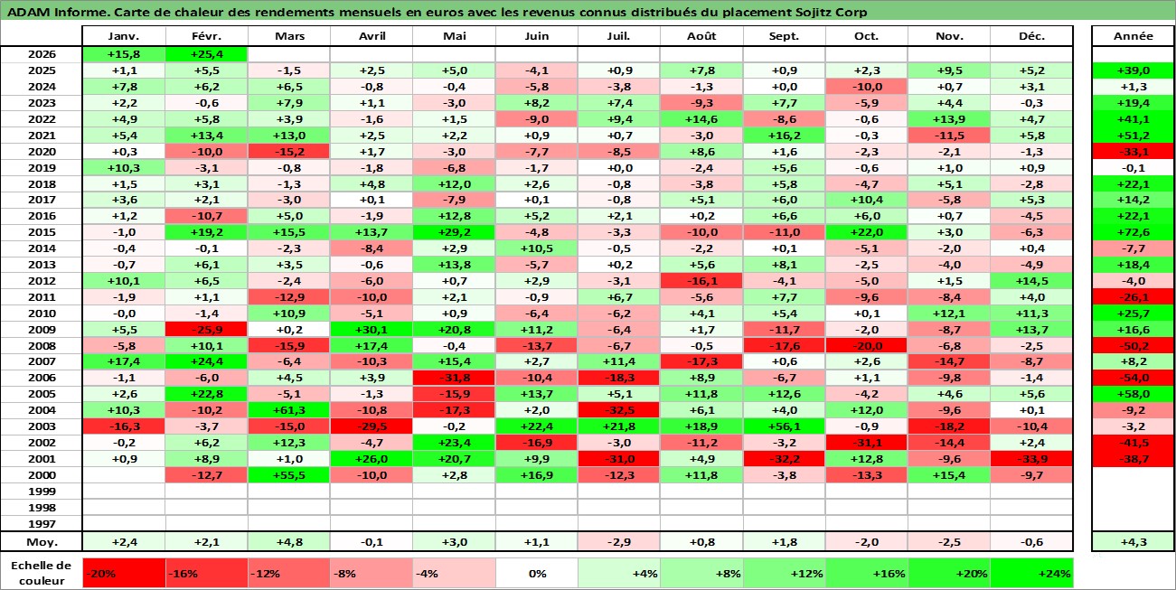 Site dédié aux investisseursPage dédiée sur site financeAnalyse des valorisations hebdomadaires de l'action Sojitz Corp. Cet actif est cote en JPY. Les valorisations sont en contrevaleur EURO et couvrent les semaines 2000W01 a 2026W09. Les revenus de cet actif financier sont pris en compte depuis la semaine 2007W13. La note ESG de cet actif n'est pas connue.