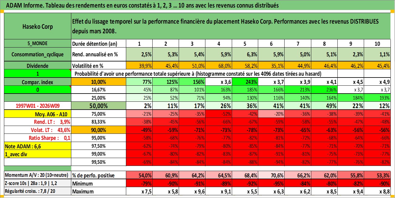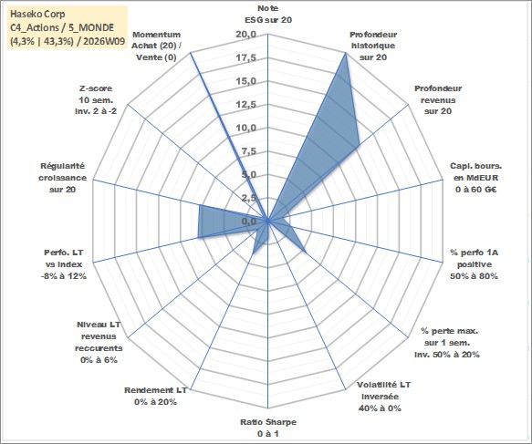 Site dédié aux investisseursPage dédiée sur site financeAnalyse des valorisations hebdomadaires de l'action Haseko Corp. Cet actif est cote en JPY. Les valorisations sont en contrevaleur EURO et couvrent les semaines 1997W01 a 2026W09. Les revenus de cet actif financier sont pris en compte depuis la semaine 2008W13. La note ESG de cet actif n'est pas connue.