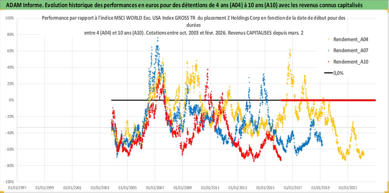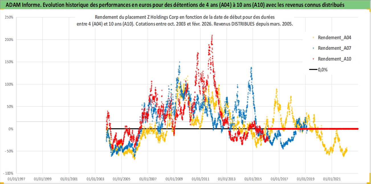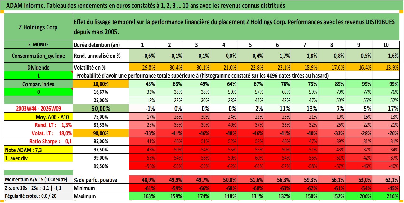 Site dédié aux investisseursPage dédiée sur site financeAnalyse des valorisations hebdomadaires de l'action Z Holdings Corp. Cet actif est cote en JPY. Les valorisations sont en contrevaleur EURO et couvrent les semaines 2003W44 a 2026W09. Les revenus de cet actif financier sont pris en compte depuis la semaine 2005W13. La note globale ESG de cet actif est estimee a 10.0 (apres rebasage entre 0 et 20).