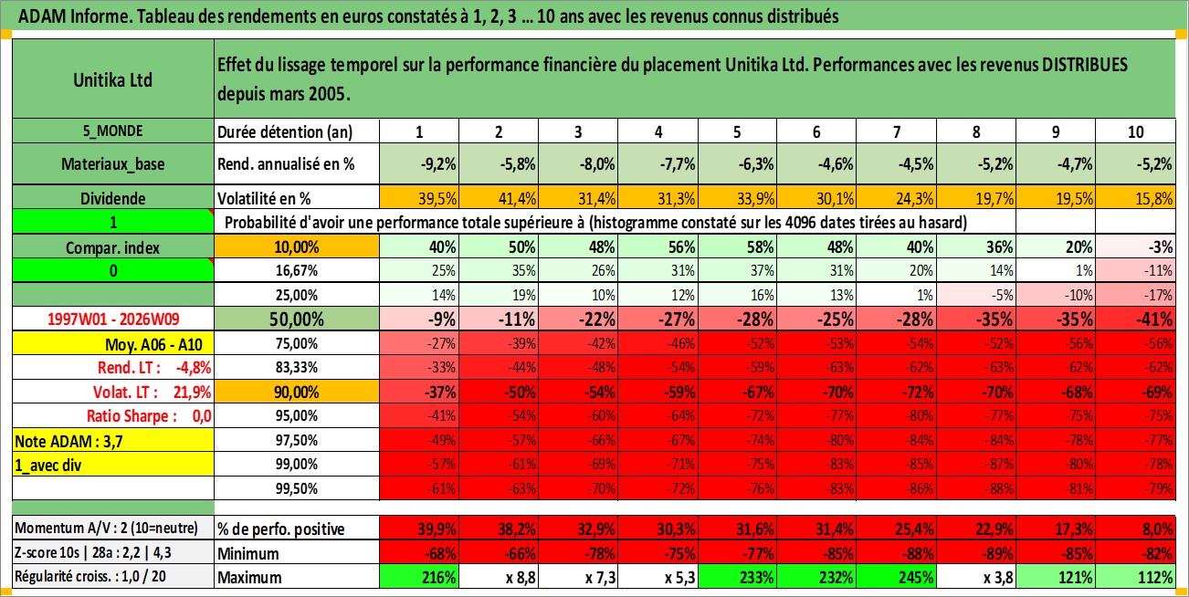Site dédié aux investisseursPage dédiée sur site financeAnalyse des valorisations hebdomadaires de l'action Unitika Ltd. Cet actif est cote en JPY. Les valorisations sont en contrevaleur EURO et couvrent les semaines 1997W01 a 2026W09. Les revenus de cet actif financier sont pris en compte depuis la semaine 2005W13. La note ESG de cet actif n'est pas connue.