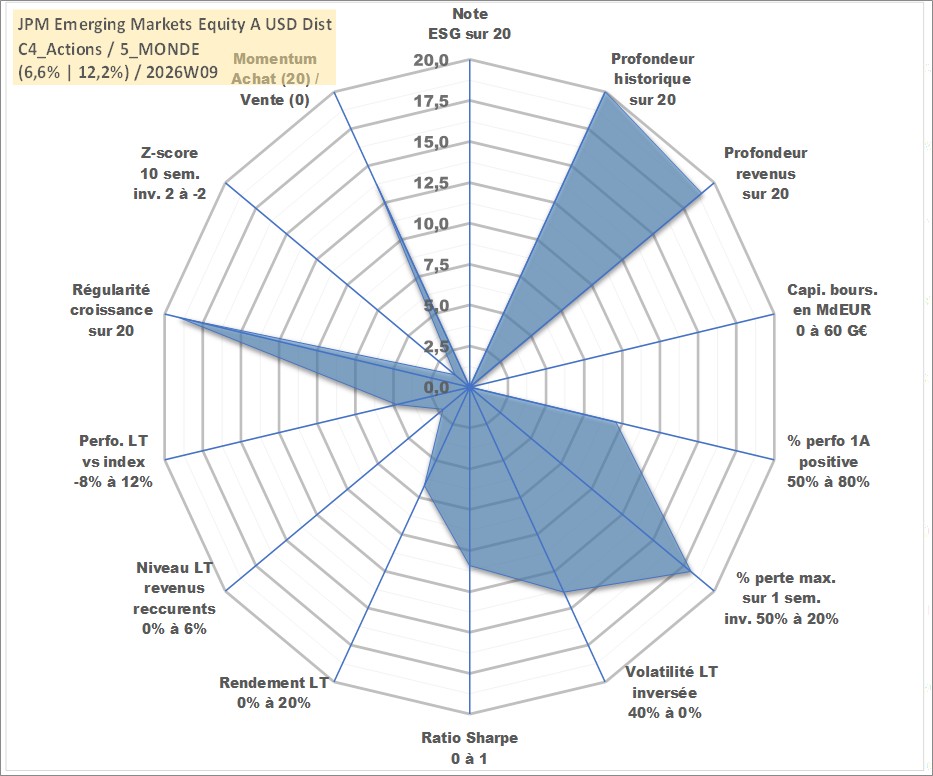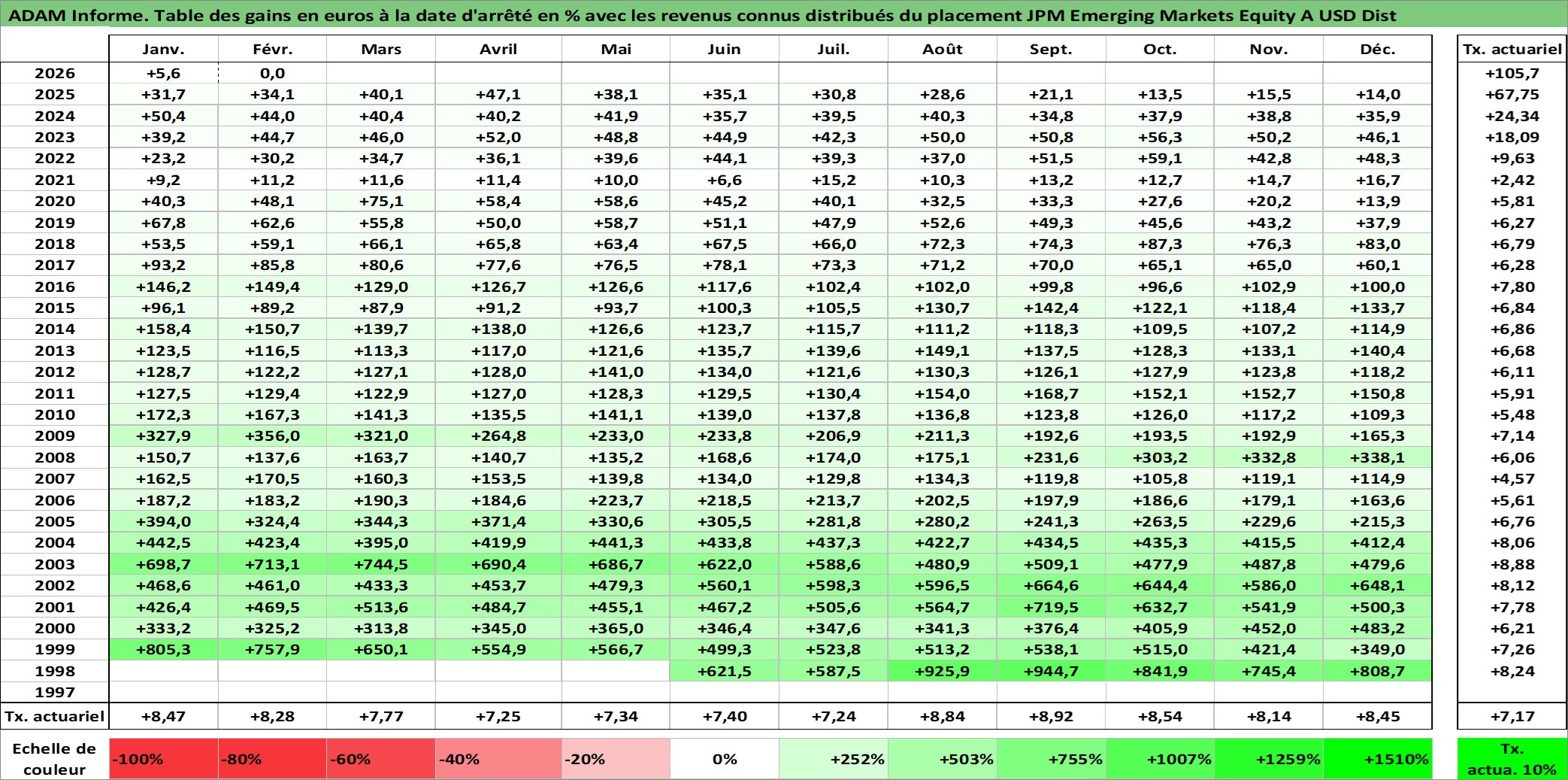 Site dédié aux investisseursPage dédiée sur site financeAnalyse des valorisations hebdomadaires du fonds JPM Emerging Markets Equity A USD Dist. Cet actif est cote en USD. Les valorisations sont en contrevaleur EURO et couvrent les semaines 1998W29 a 2026W09. Les revenus de cet actif financier sont pris en compte depuis la semaine 1998W40. La note ESG de cet actif n'est pas connue.