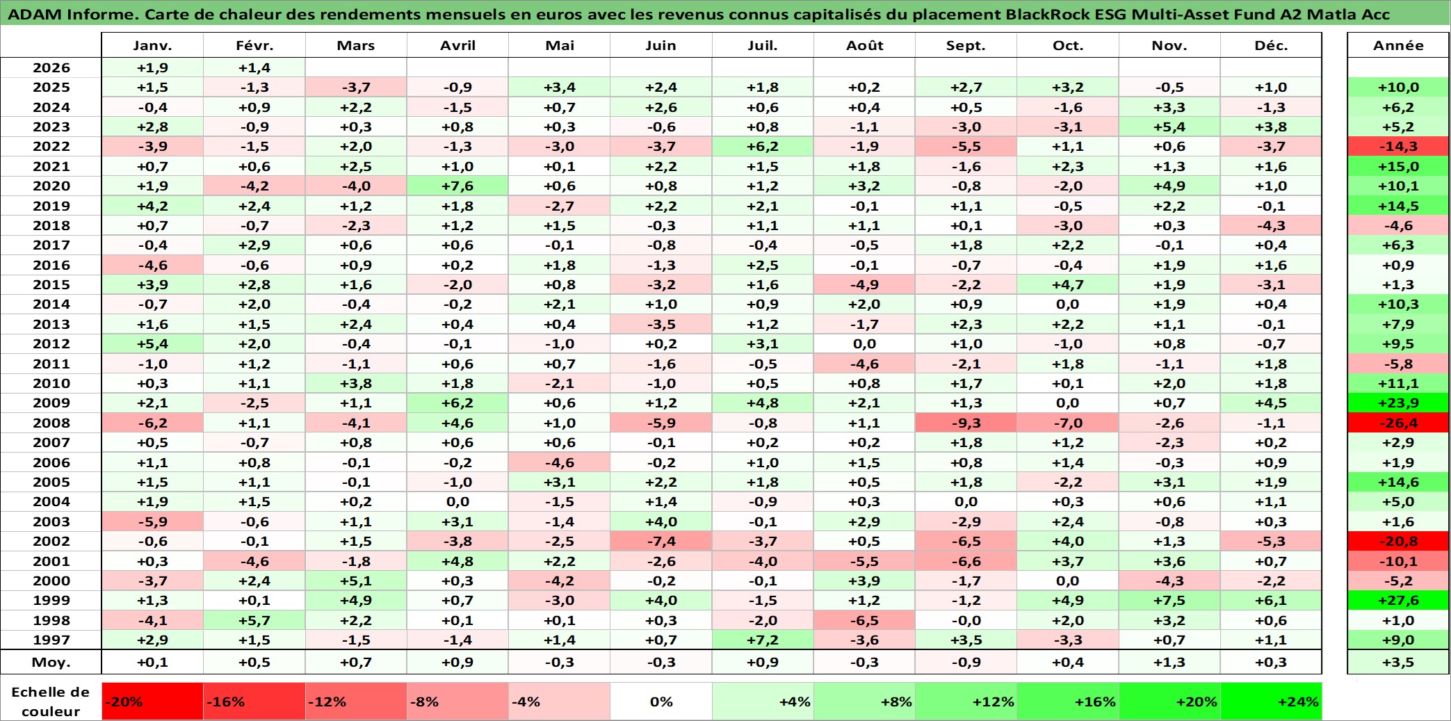 Site dédié aux investisseursPage dédiée sur site financeAnalyse des valorisations hebdomadaires du fonds BlackRock ESG Multi-Asset Fund A2 Matla Acc. Cet actif est cote en EUR. Les valorisations couvrent les semaines 1997W01 a 2026W09. Les revenus de cet actif financier sont pris en compte depuis la semaine 1997W01. La note globale ESG de cet actif est estimee a 7.7 (apres rebasage entre 0 et 20).