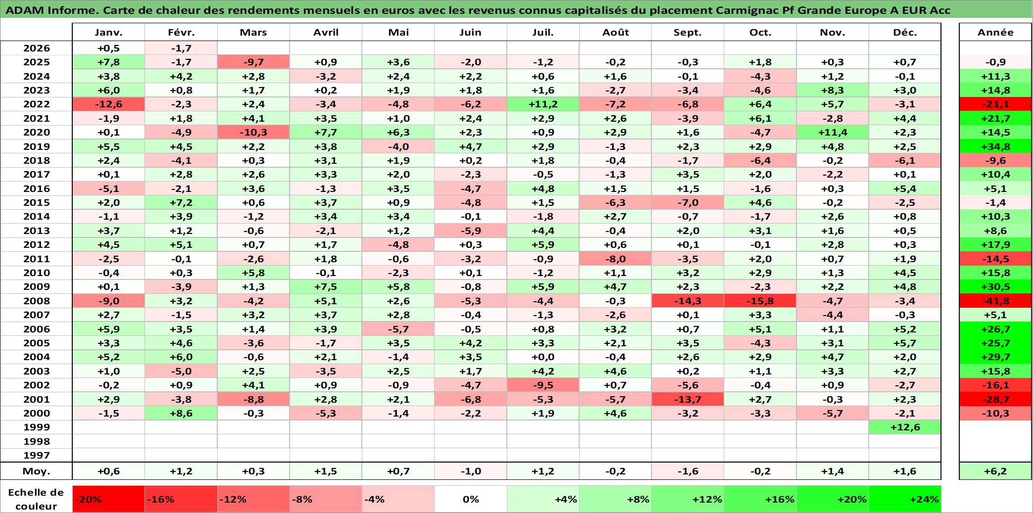 Dernière perfo 1 an en %