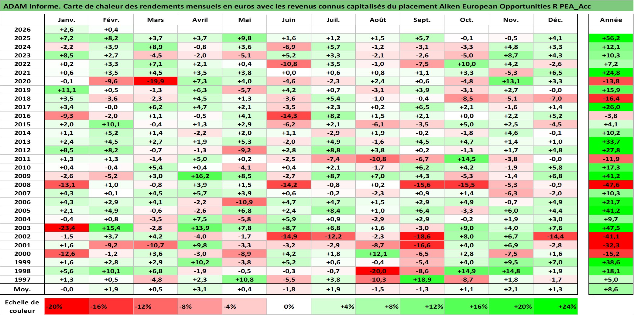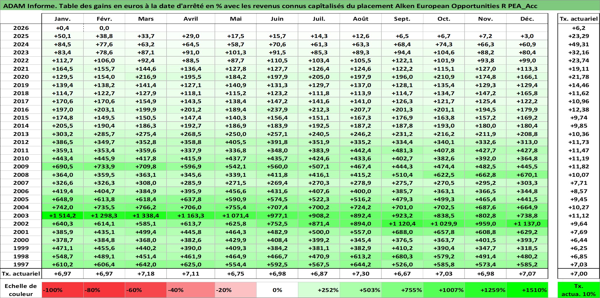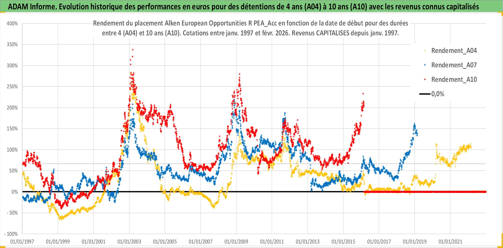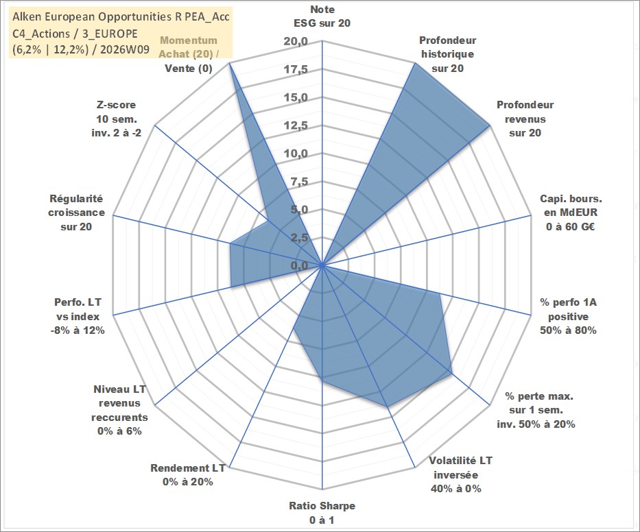 Site dédié aux investisseursPage dédiée sur site financeAnalyse des valorisations hebdomadaires du fonds Alken European Opportunities R PEA_Acc. Cet actif est cote en EUR. Les valorisations couvrent les semaines 1997W01 a 2026W09. Les revenus de cet actif financier sont pris en compte depuis la semaine 1997W01. La note ESG de cet actif n'est pas connue.
