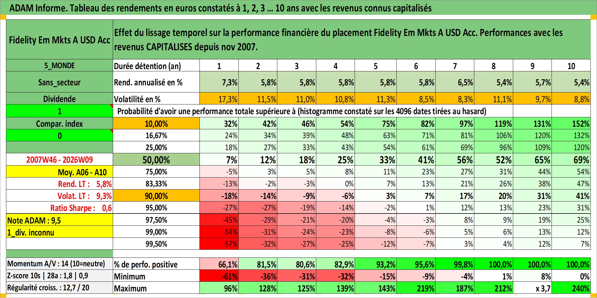 Dernière perfo 10 ans en %