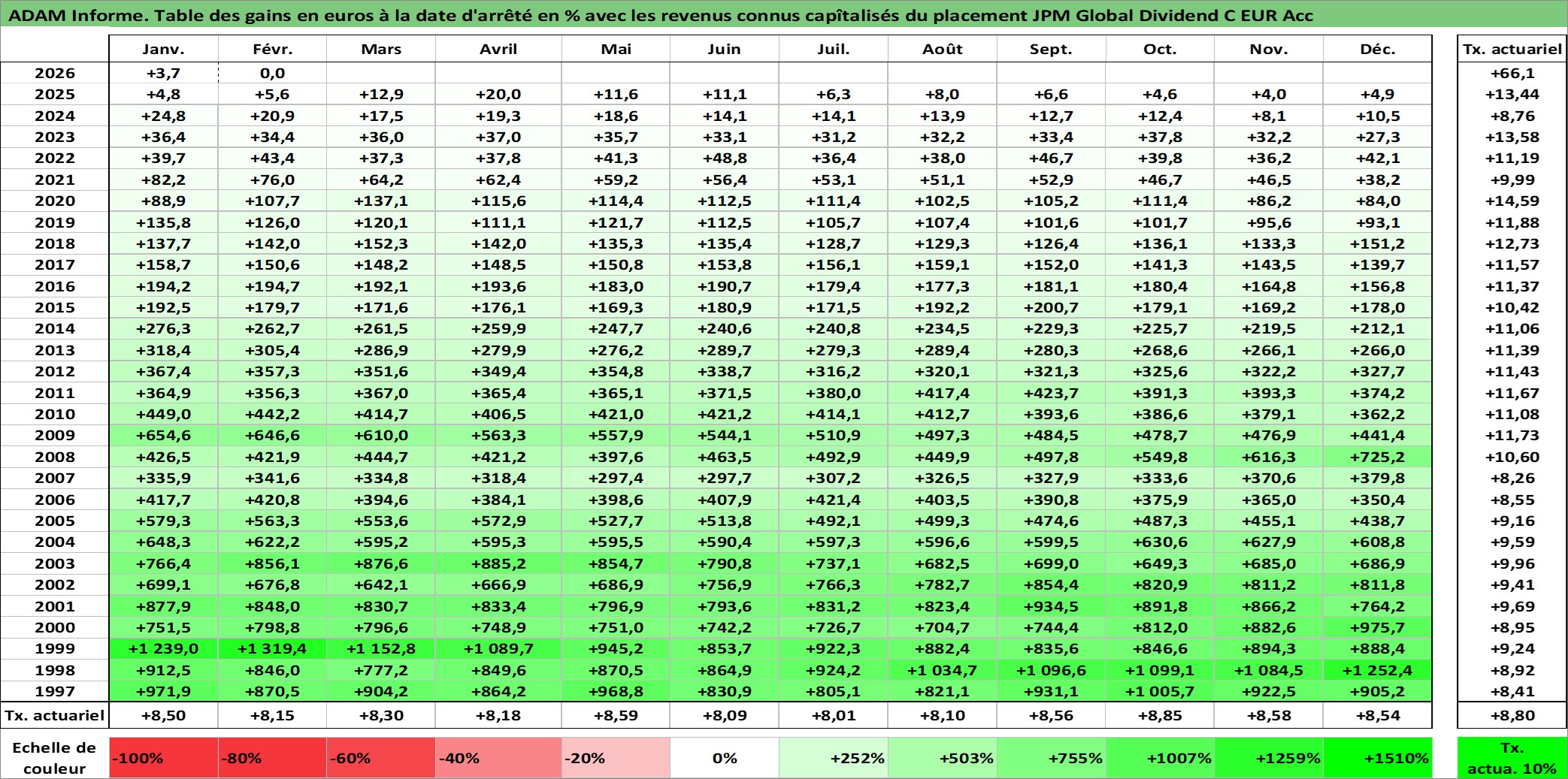 Site dédié aux investisseursPage dédiée sur site financeAnalyse des valorisations hebdomadaires du fonds JPM Global Dividend C EUR Acc. Cet actif est cote en EUR. Les valorisations couvrent les semaines 1997W01 a 2026W09. Les revenus de cet actif financier sont pris en compte depuis la semaine 1997W01. La note ESG de cet actif n'est pas connue.