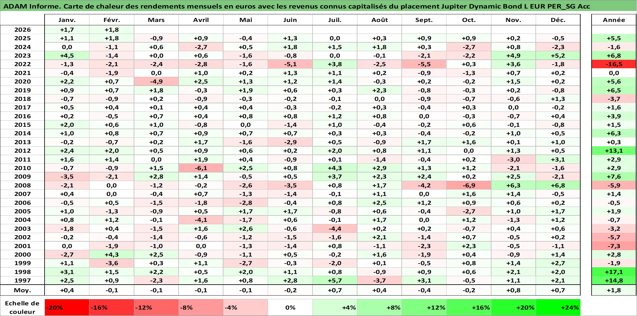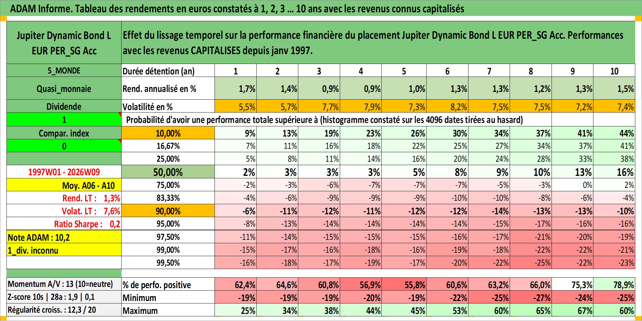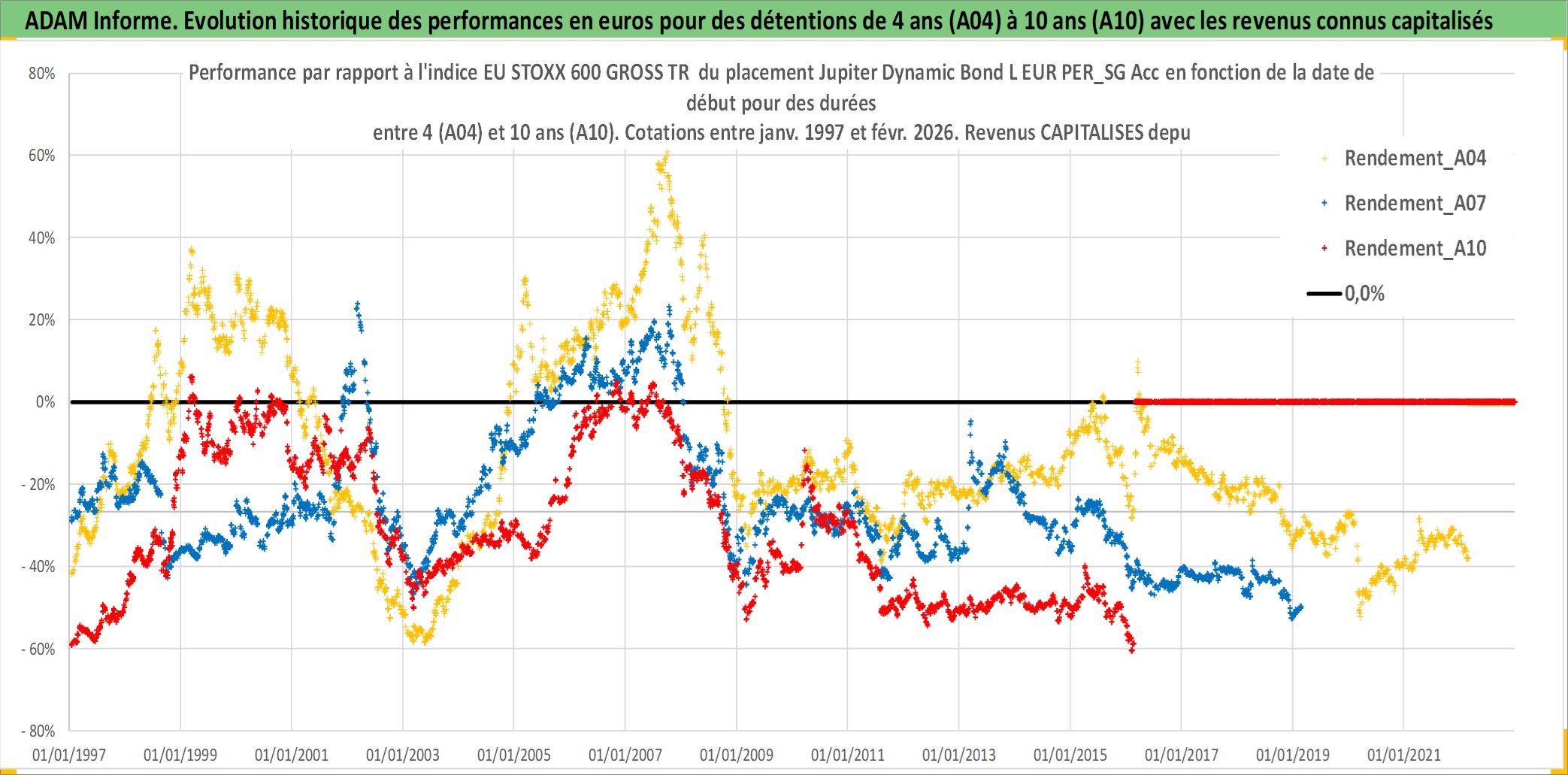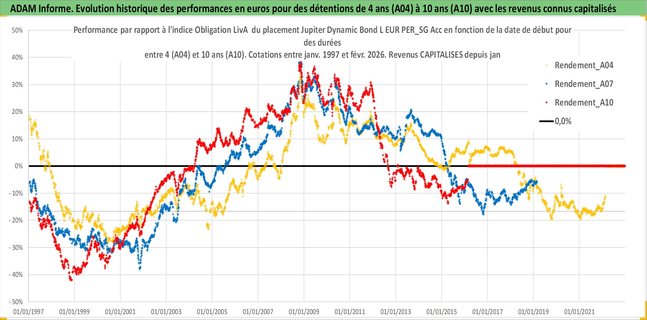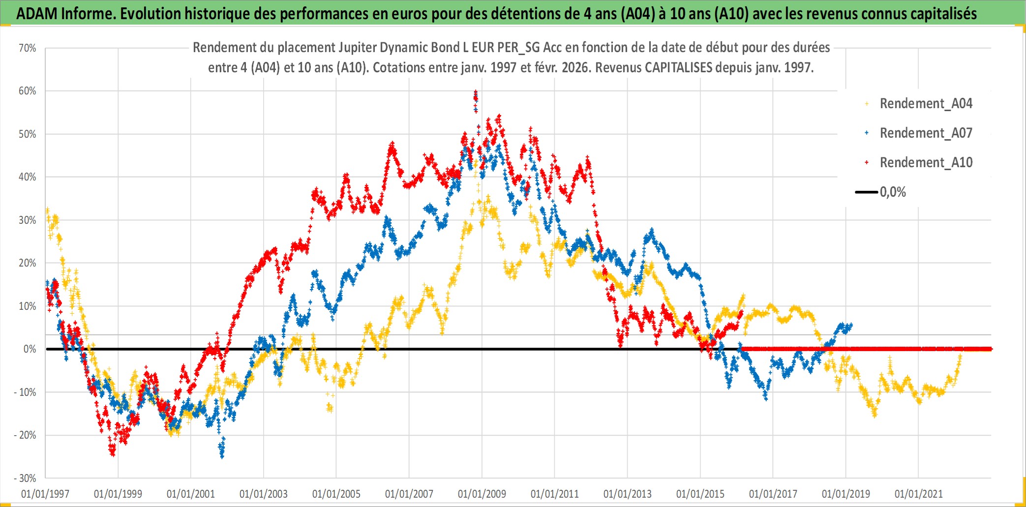 Site dédié aux investisseursPage dédiée sur site financeAnalyse des valorisations hebdomadaires du fonds Jupiter Dynamic Bond L EUR PER_SG Acc. Cet actif est cote en EUR. Les valorisations couvrent les semaines 1997W01 a 2026W09. Les revenus de cet actif financier sont pris en compte depuis la semaine 1997W01. La note ESG de cet actif n'est pas connue.