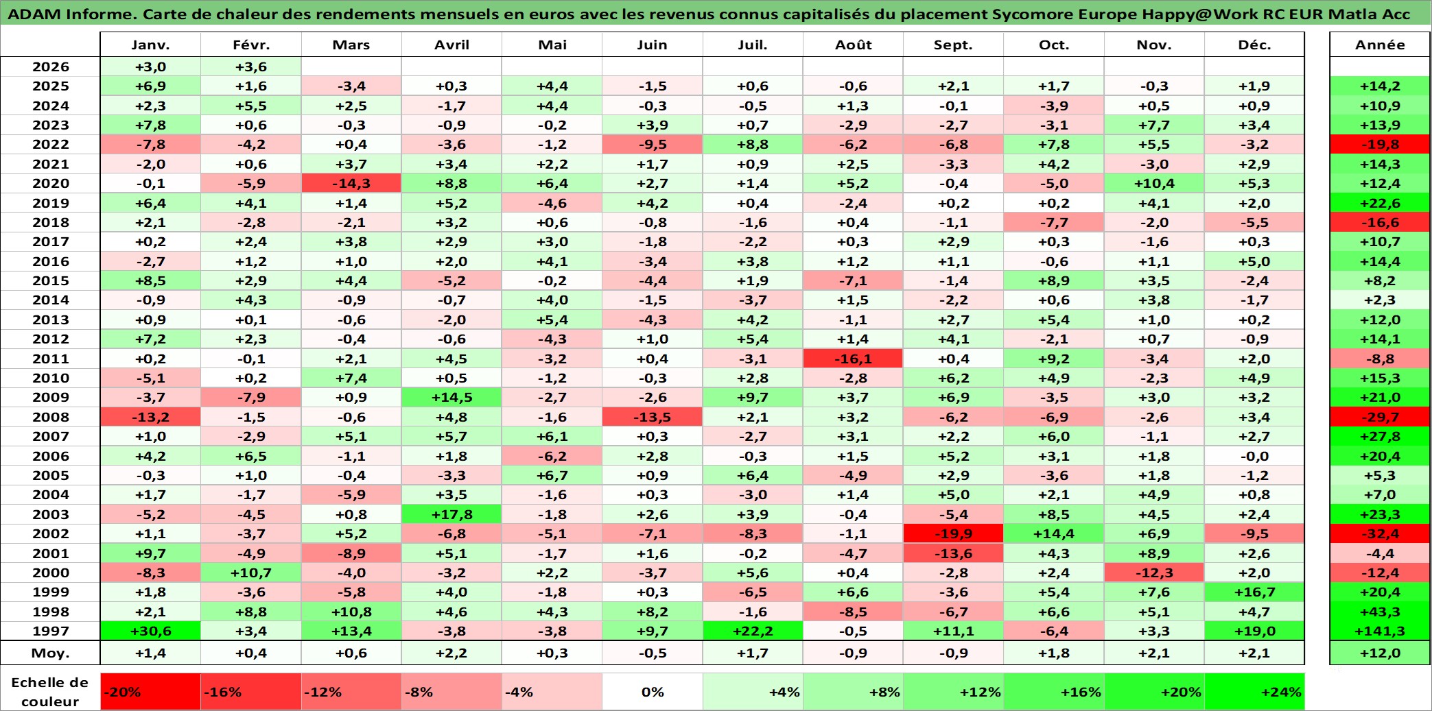 Site dédié aux investisseursPage dédiée sur site financeAnalyse des valorisations hebdomadaires du fonds Sycomore Europe Happy@Work RC EUR Matla Acc. Cet actif est cote en EUR. Les valorisations couvrent les semaines 1997W01 a 2026W09. Les revenus de cet actif financier sont pris en compte depuis la semaine 1997W01. La note ESG de cet actif n'est pas connue.