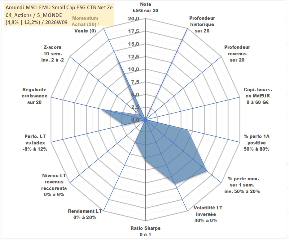 Site dédié aux investisseursPage dédiée sur site financeAnalyse des valorisations hebdomadaires du fonds Amundi MSCI EMU Small Cap ESG CTB Net Zero Ambition UCITS ETF Dist. Cet actif est cote en EUR. Les valorisations couvrent les semaines 1997W01 a 2026W09. Les revenus de cet actif financier sont pris en compte depuis la semaine 2025W50. La note ESG de cet actif n'est pas connue.