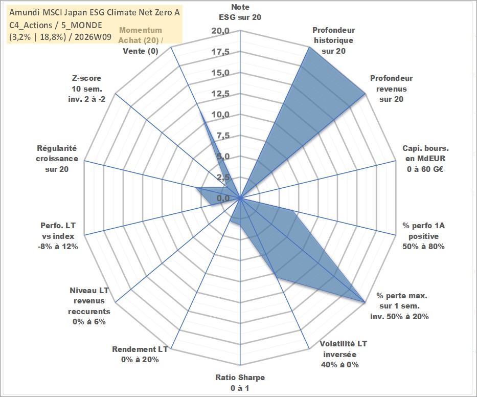 Site dédié aux investisseursPage dédiée sur site financeAnalyse des valorisations hebdomadaires du fonds Amundi MSCI Japan ESG Climate Net Zero Ambition CTB UCITS ETF EUR Acc. Cet actif est cote en EUR. Les valorisations couvrent les semaines 1997W01 a 2026W09. Les revenus de cet actif financier sont pris en compte depuis la semaine 1997W01. La note ESG de cet actif n'est pas connue.