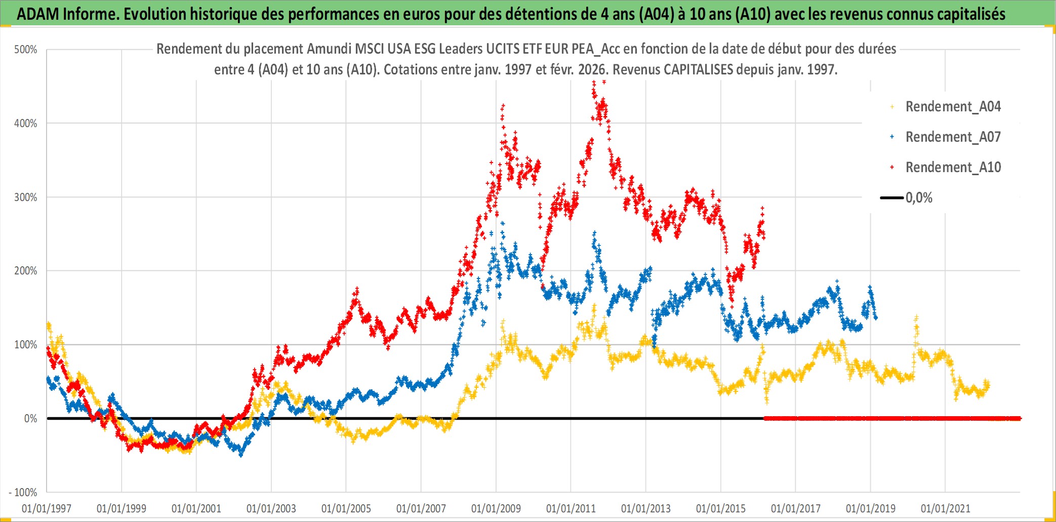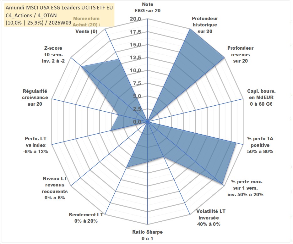 Site dédié aux investisseursPage dédiée sur site financeAnalyse des valorisations hebdomadaires du fonds Amundi MSCI USA ESG Leaders UCITS ETF EUR PEA_Acc. Cet actif est cote en EUR. Les valorisations couvrent les semaines 1997W01 a 2026W09. Les revenus de cet actif financier sont pris en compte depuis la semaine 1997W01. La note ESG de cet actif n'est pas connue.