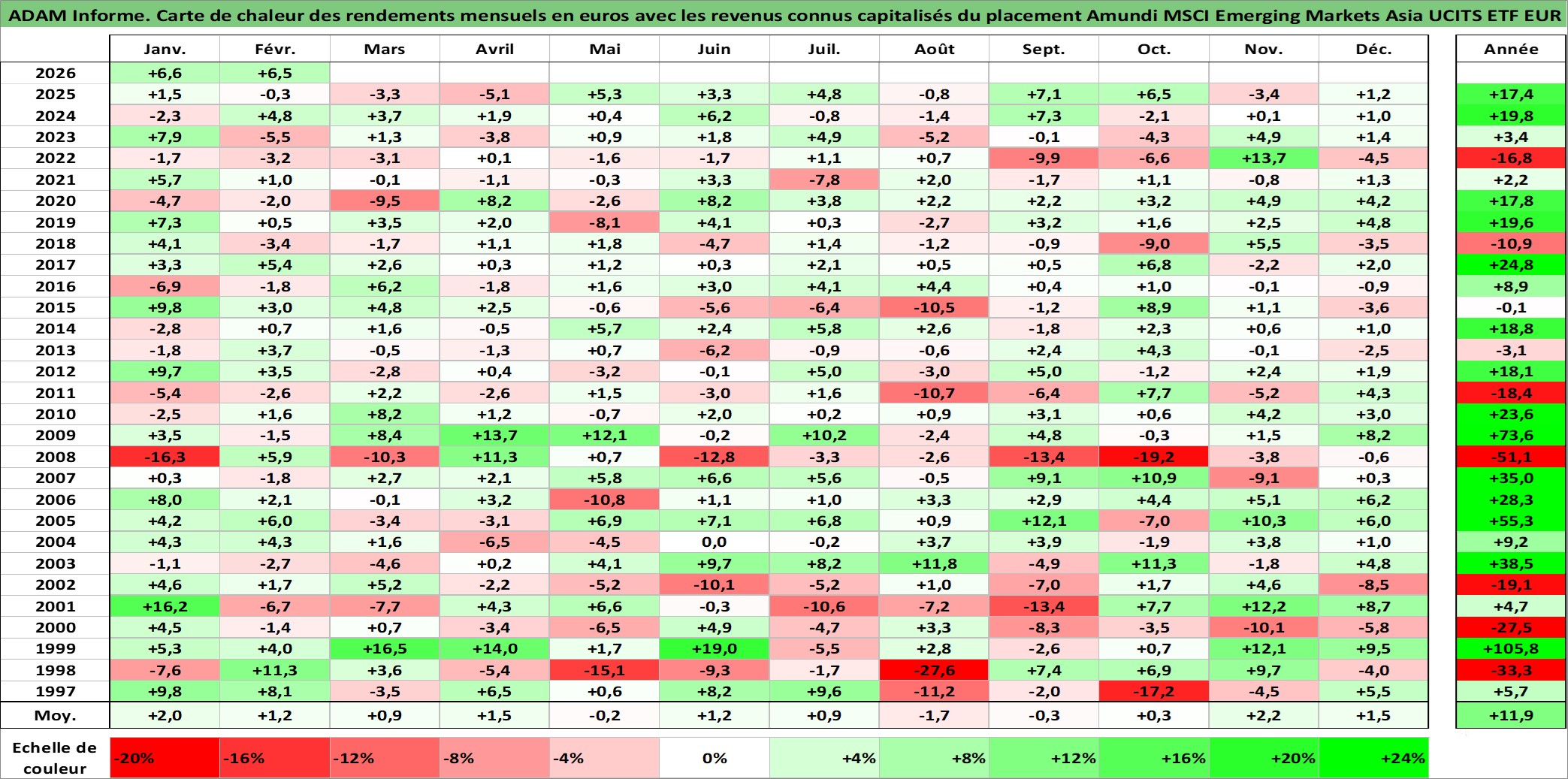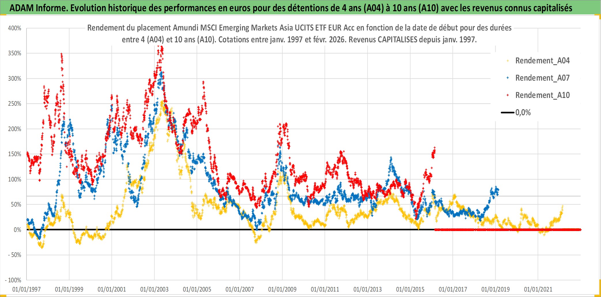 Site dédié aux investisseursPage dédiée sur site financeAnalyse des valorisations hebdomadaires du fonds Amundi MSCI Emerging Markets Asia UCITS ETF EUR Acc. Cet actif est cote en EUR. Les valorisations couvrent les semaines 1997W01 a 2026W09. Les revenus de cet actif financier sont pris en compte depuis la semaine 1997W01. La note ESG de cet actif n'est pas connue.
