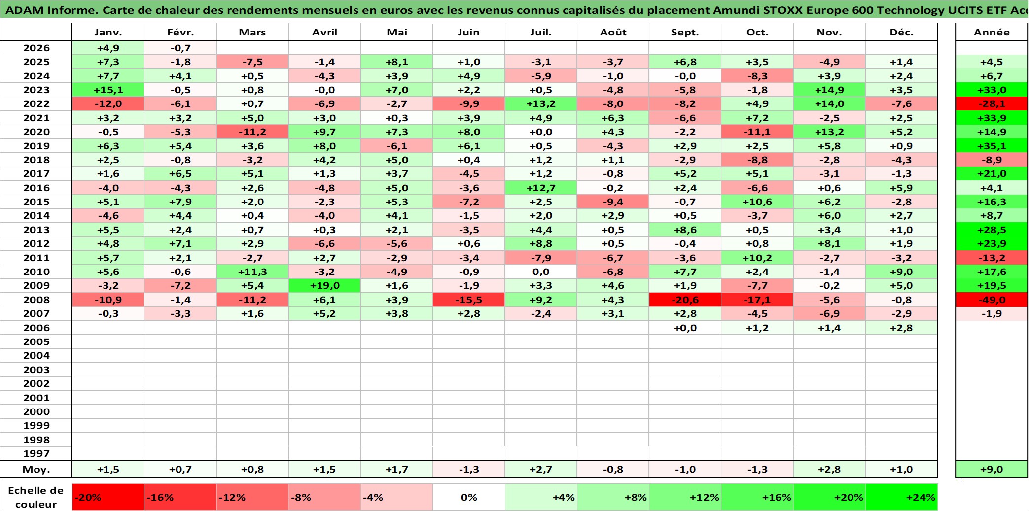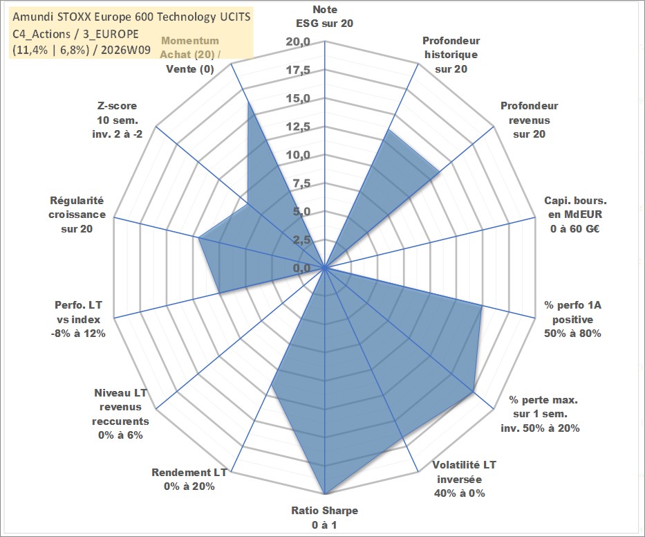 Site dédié aux investisseursPage dédiée sur site financeAnalyse des valorisations hebdomadaires du fonds Amundi STOXX Europe 600 Technology UCITS ETF Acc. Cet actif est cote en EUR. Les valorisations couvrent les semaines 2006W38 a 2026W09. Les revenus de cet actif financier sont pris en compte depuis la semaine 2006W38. La note ESG de cet actif n'est pas connue.