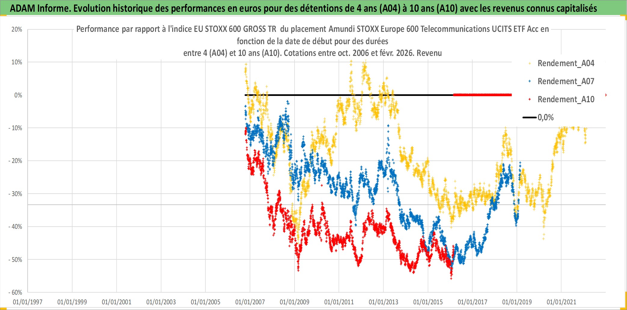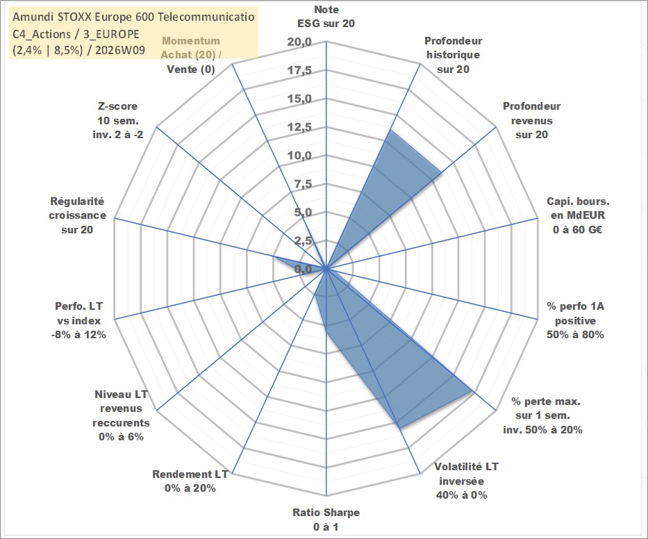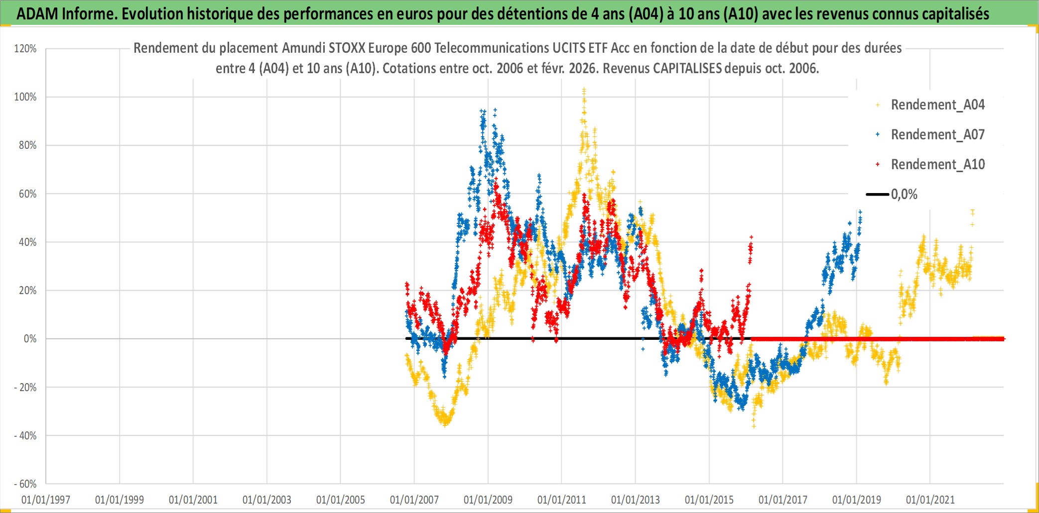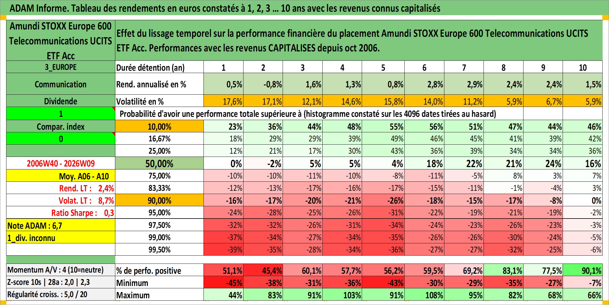 Site dédié aux investisseursPage dédiée sur site financeAnalyse des valorisations hebdomadaires du fonds Amundi STOXX Europe 600 Telecommunications UCITS ETF Acc. Cet actif est cote en EUR. Les valorisations couvrent les semaines 2006W40 a 2026W09. Les revenus de cet actif financier sont pris en compte depuis la semaine 2006W40. La note ESG de cet actif n'est pas connue.