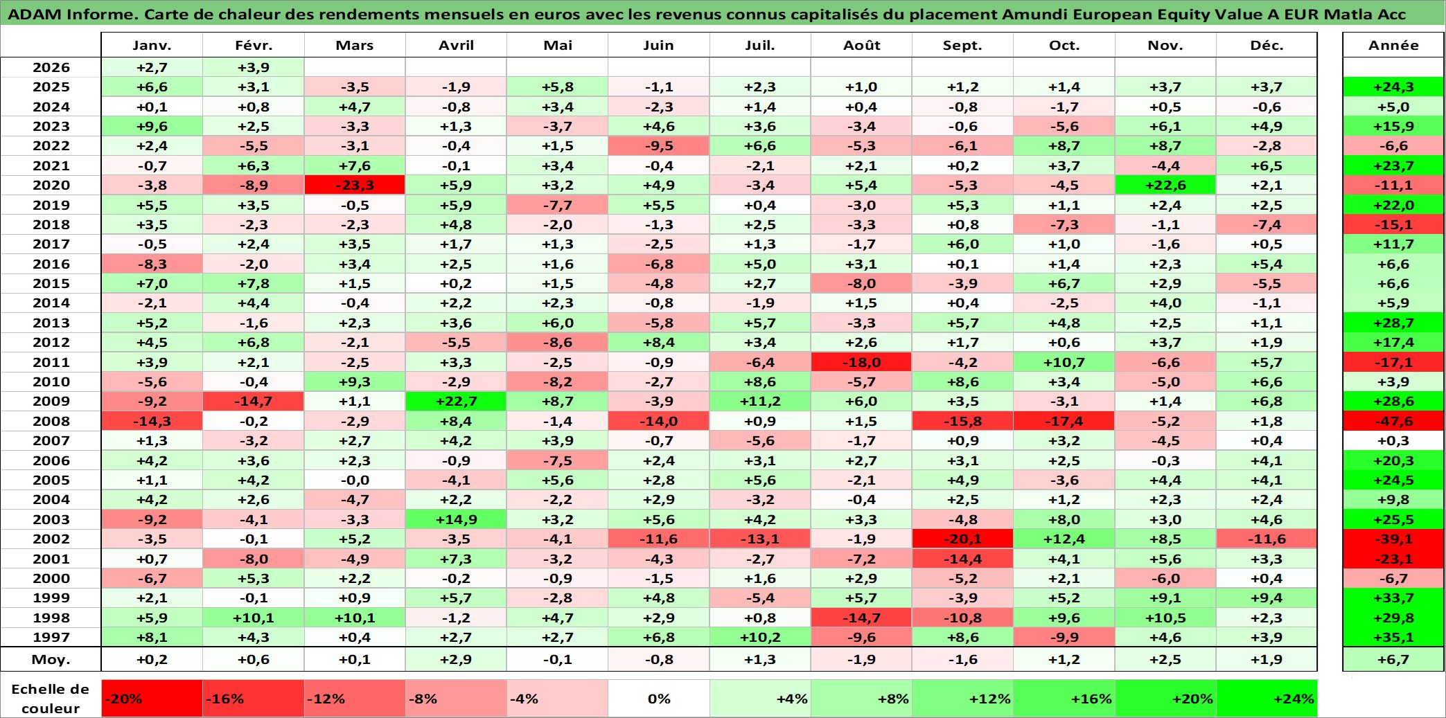 Site dédié aux investisseursPage dédiée sur site financeAnalyse des valorisations hebdomadaires du fonds Amundi European Equity Value A EUR Matla Acc. Cet actif est cote en EUR. Les valorisations couvrent les semaines 1997W01 a 2026W09. Les revenus de cet actif financier sont pris en compte depuis la semaine 1997W01. La note ESG de cet actif n'est pas connue.