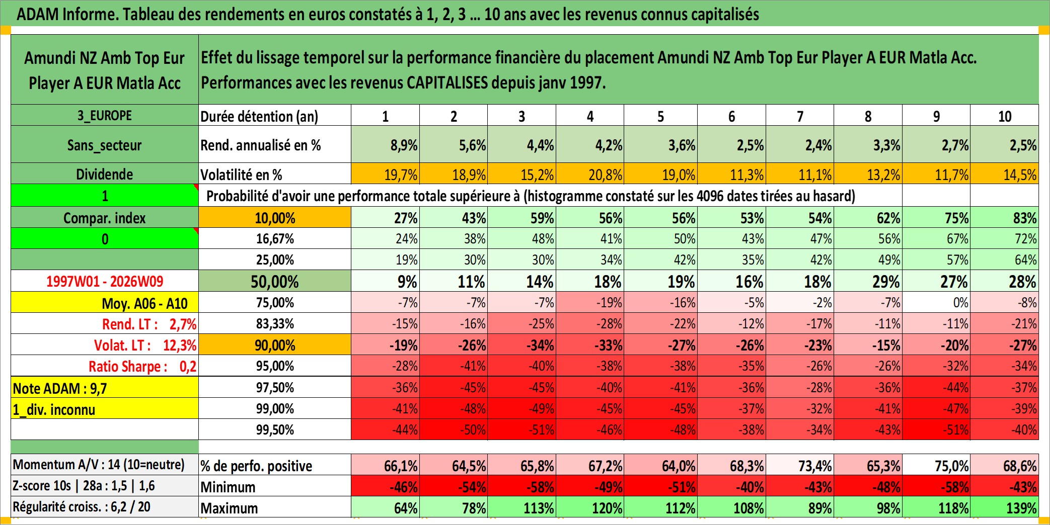 Site dédié aux investisseursPage dédiée sur site financeAnalyse des valorisations hebdomadaires du fonds Amundi NZ Amb Top Eur Player A EUR Matla Acc. Cet actif est cote en EUR. Les valorisations couvrent les semaines 1997W01 a 2026W09. Les revenus de cet actif financier sont pris en compte depuis la semaine 1997W01. La note ESG de cet actif n'est pas connue.