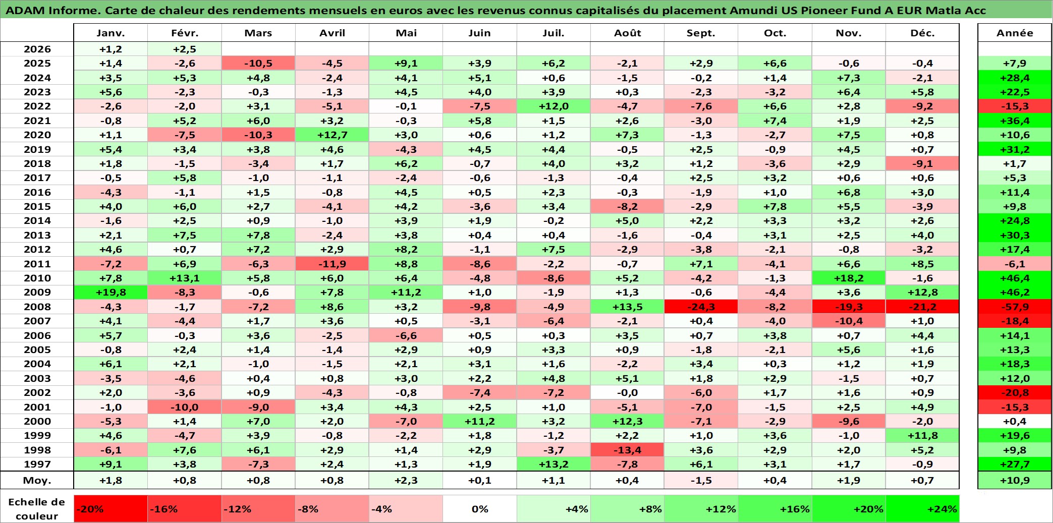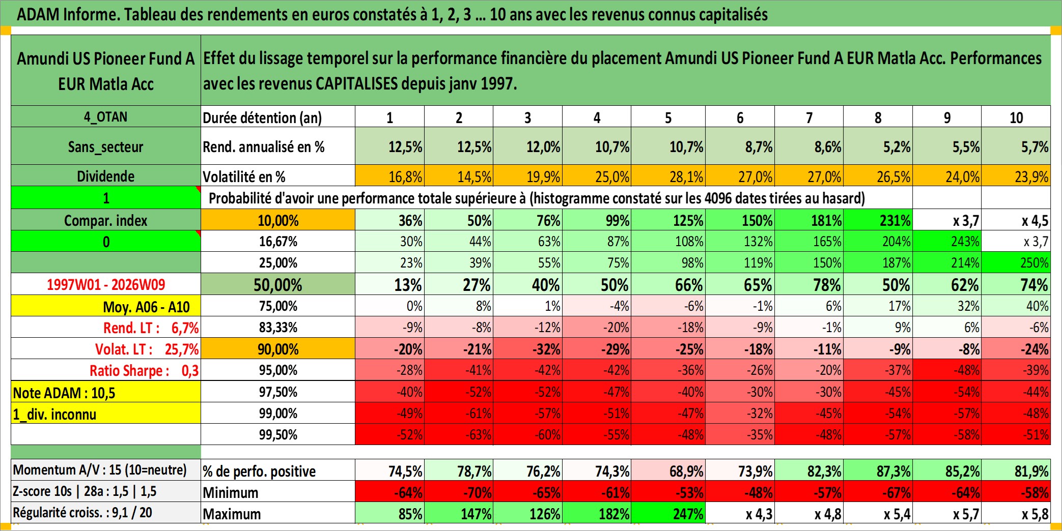 Dernière perfo 10 ans en %