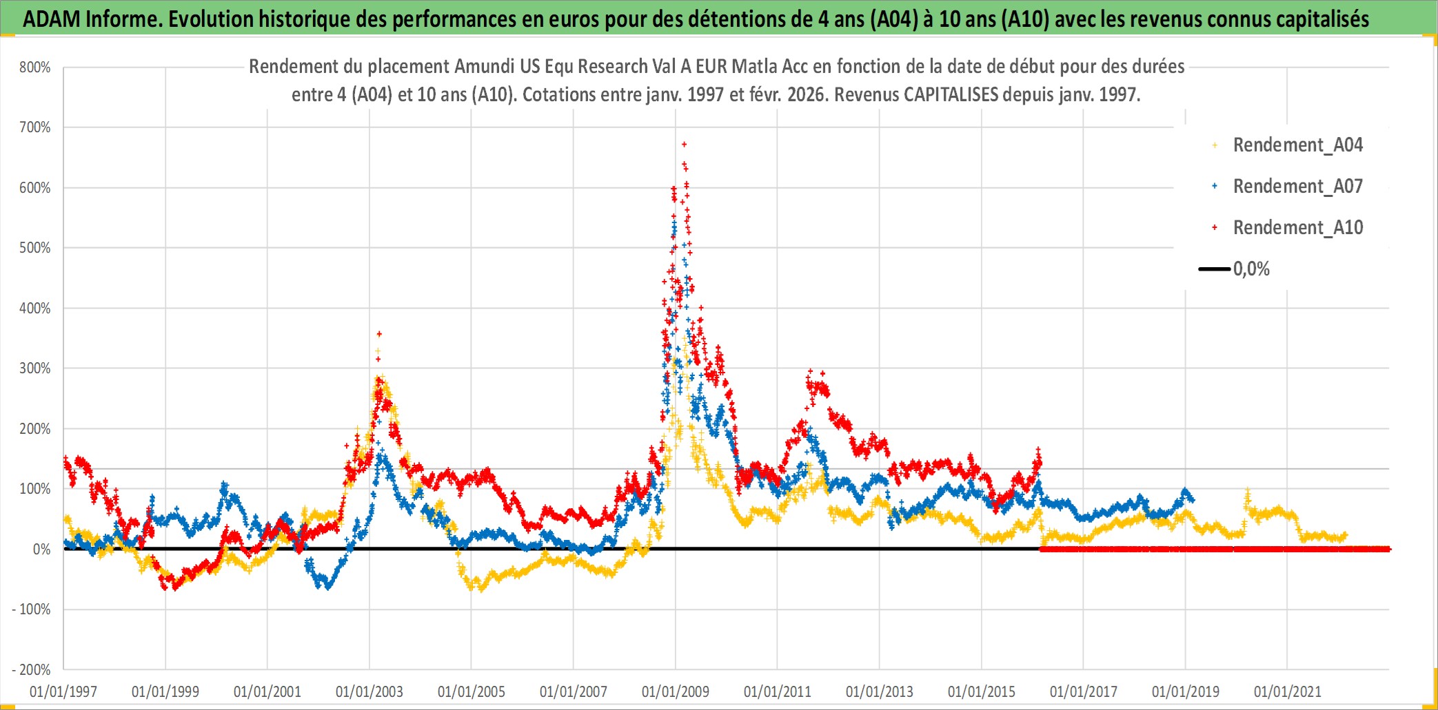 Site dédié aux investisseursPage dédiée sur site financeAnalyse des valorisations hebdomadaires du fonds Amundi US Equ Research Val A EUR Matla Acc. Cet actif est cote en EUR. Les valorisations couvrent les semaines 1997W01 a 2026W09. Les revenus de cet actif financier sont pris en compte depuis la semaine 1997W01. La note ESG de cet actif n'est pas connue.