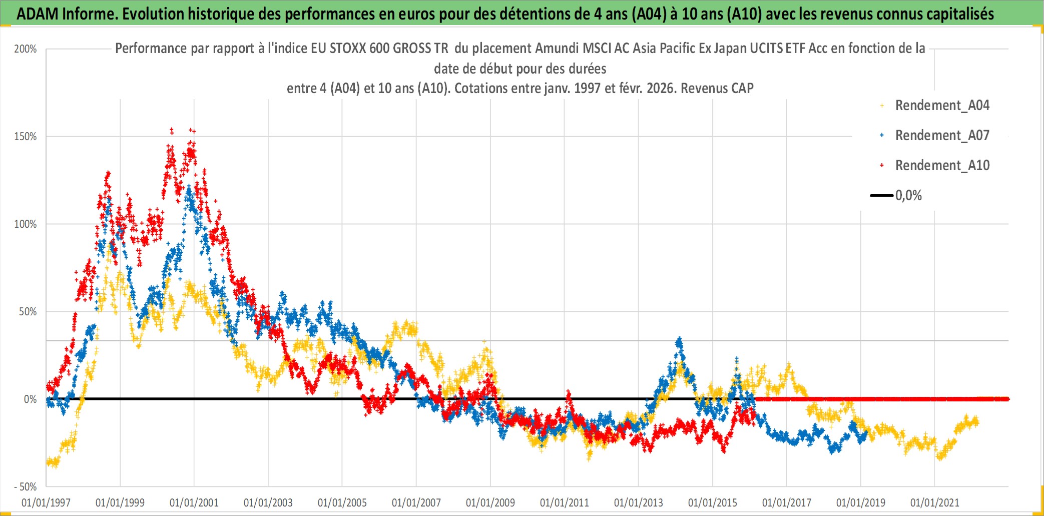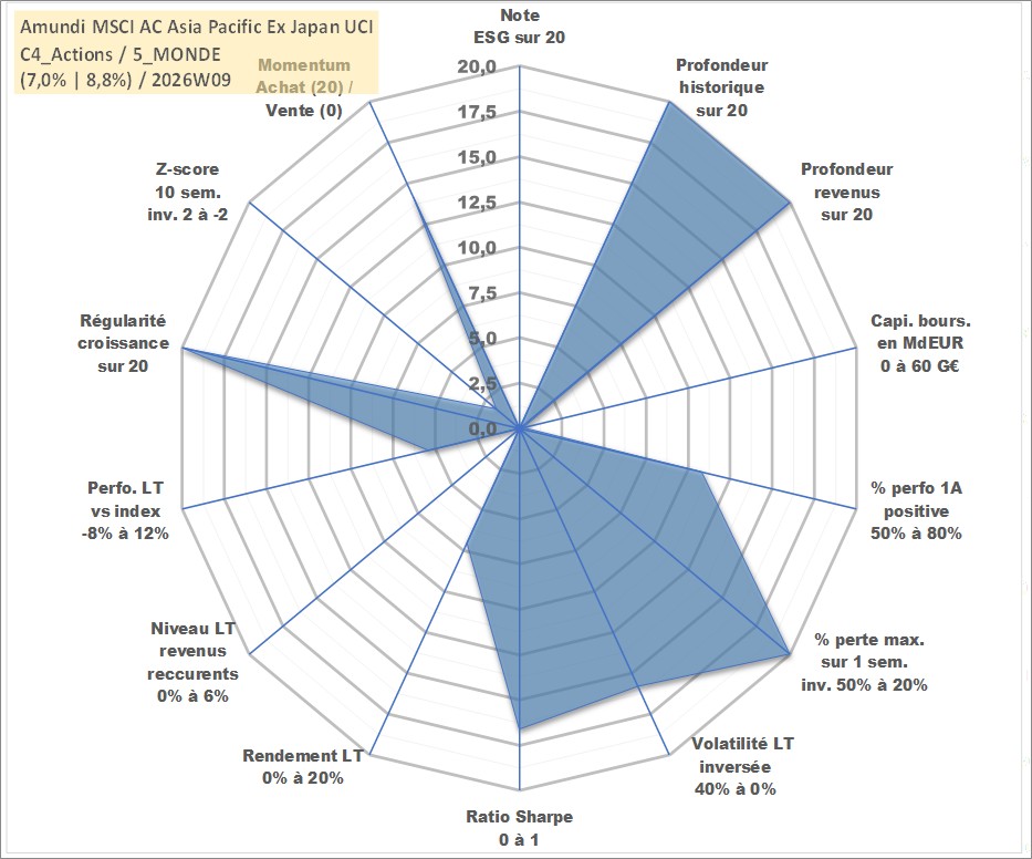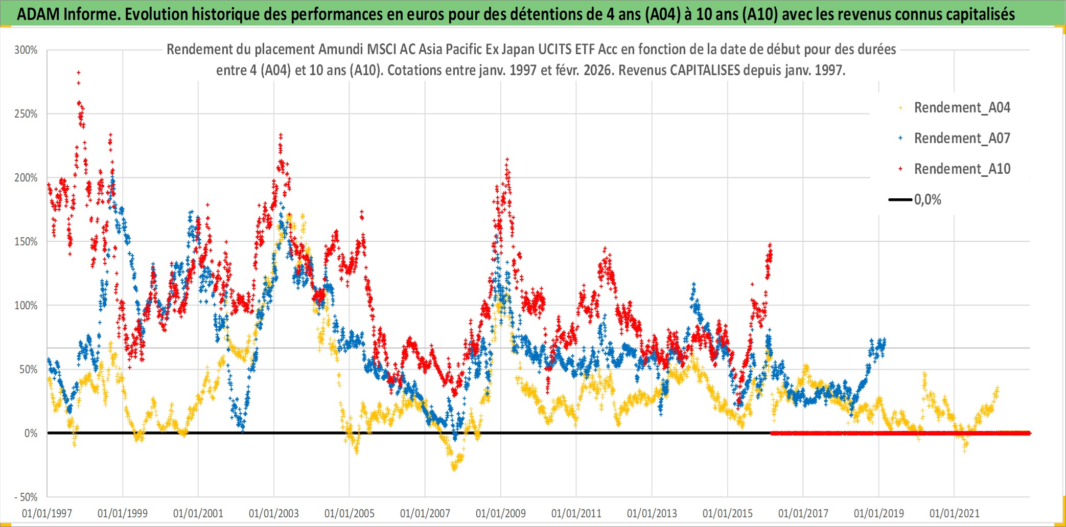 Site dédié aux investisseursPage dédiée sur site financeAnalyse des valorisations hebdomadaires du fonds Amundi MSCI AC Asia Pacific Ex Japan UCITS ETF Acc. Cet actif est cote en EUR. Les valorisations couvrent les semaines 1997W01 a 2026W09. Les revenus de cet actif financier sont pris en compte depuis la semaine 1997W01. La note ESG de cet actif n'est pas connue.